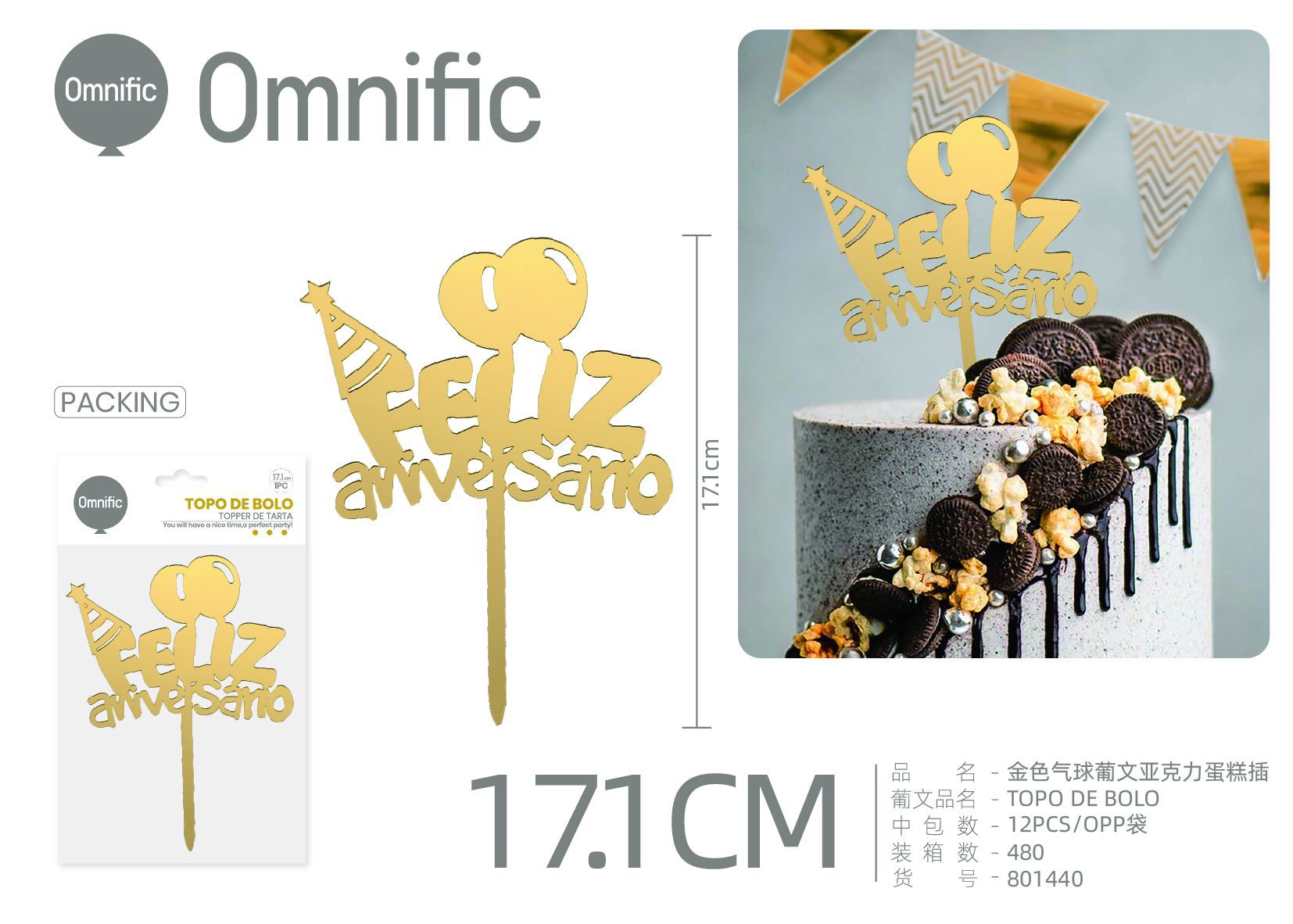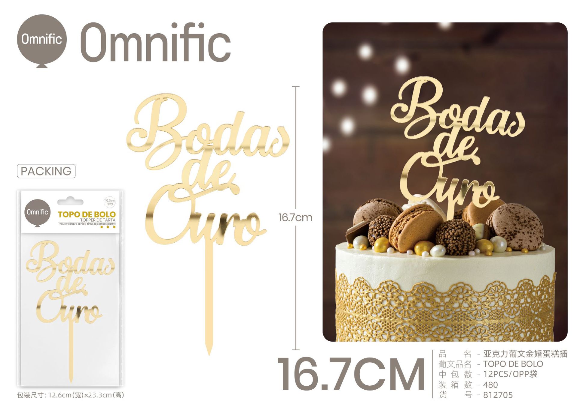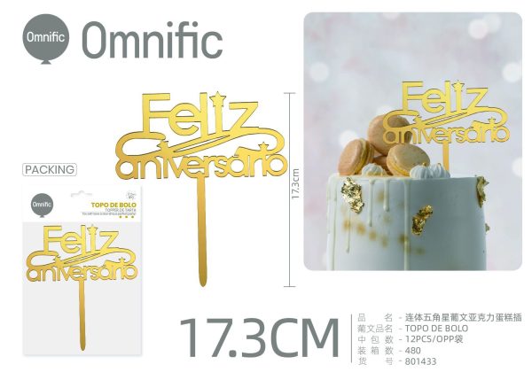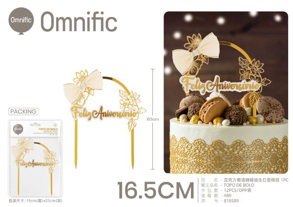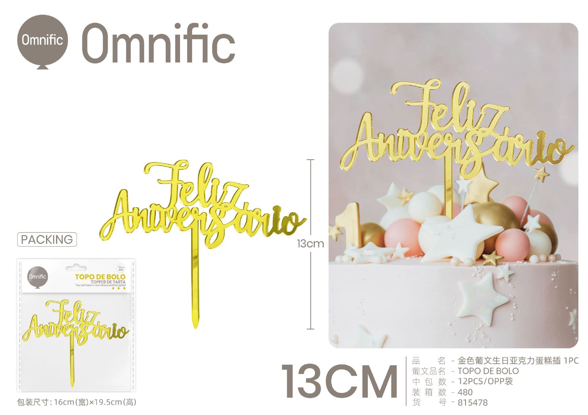 C.B. 5600936801440TOPO DE BOLO ACRILICO DOURADO F.ANIVERSARIO