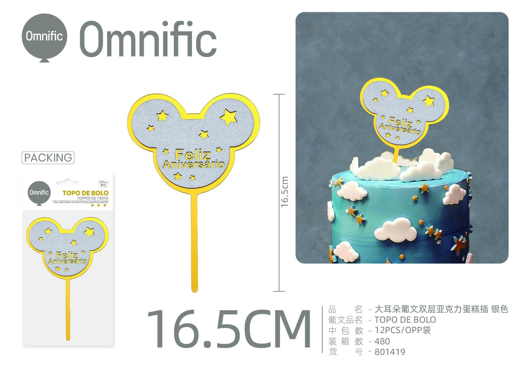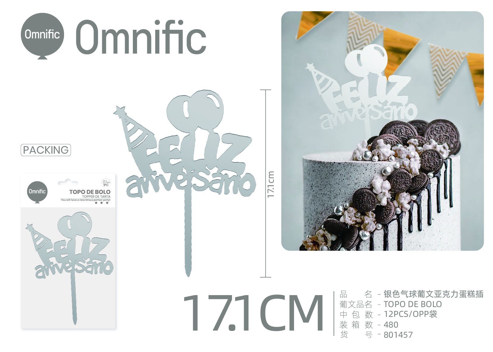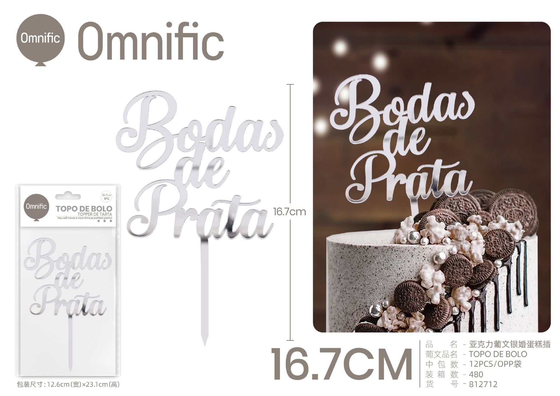 C.B. 5600936801419TOPO DE BOLO ACRILICO PRATEADO F.ANIVERSARIO
