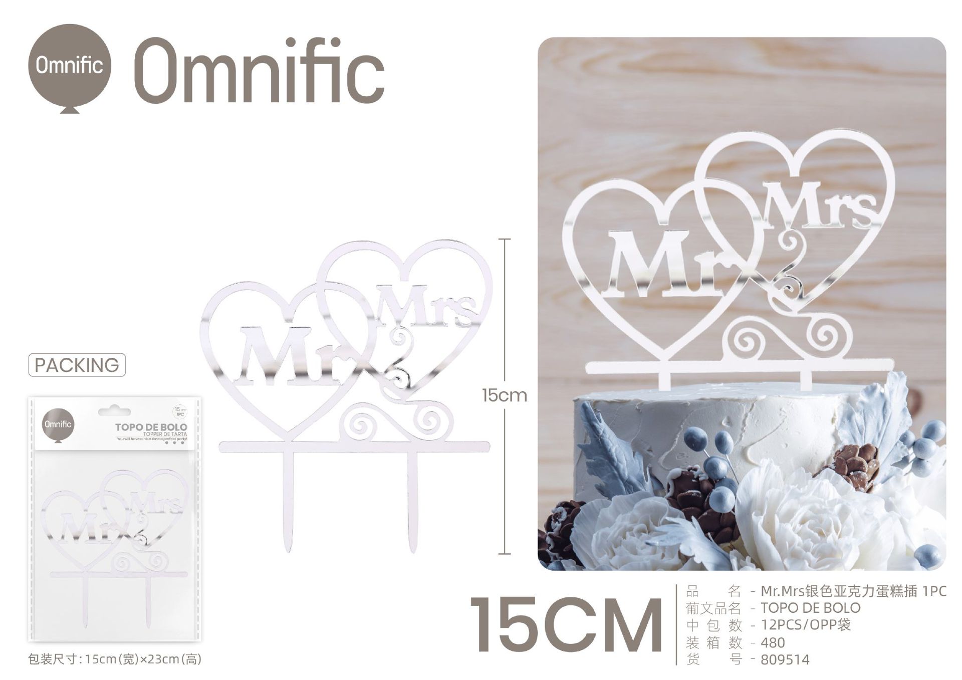 C.B. 5600936809514TOPO DE BOLO MR.MRS PRATEADO