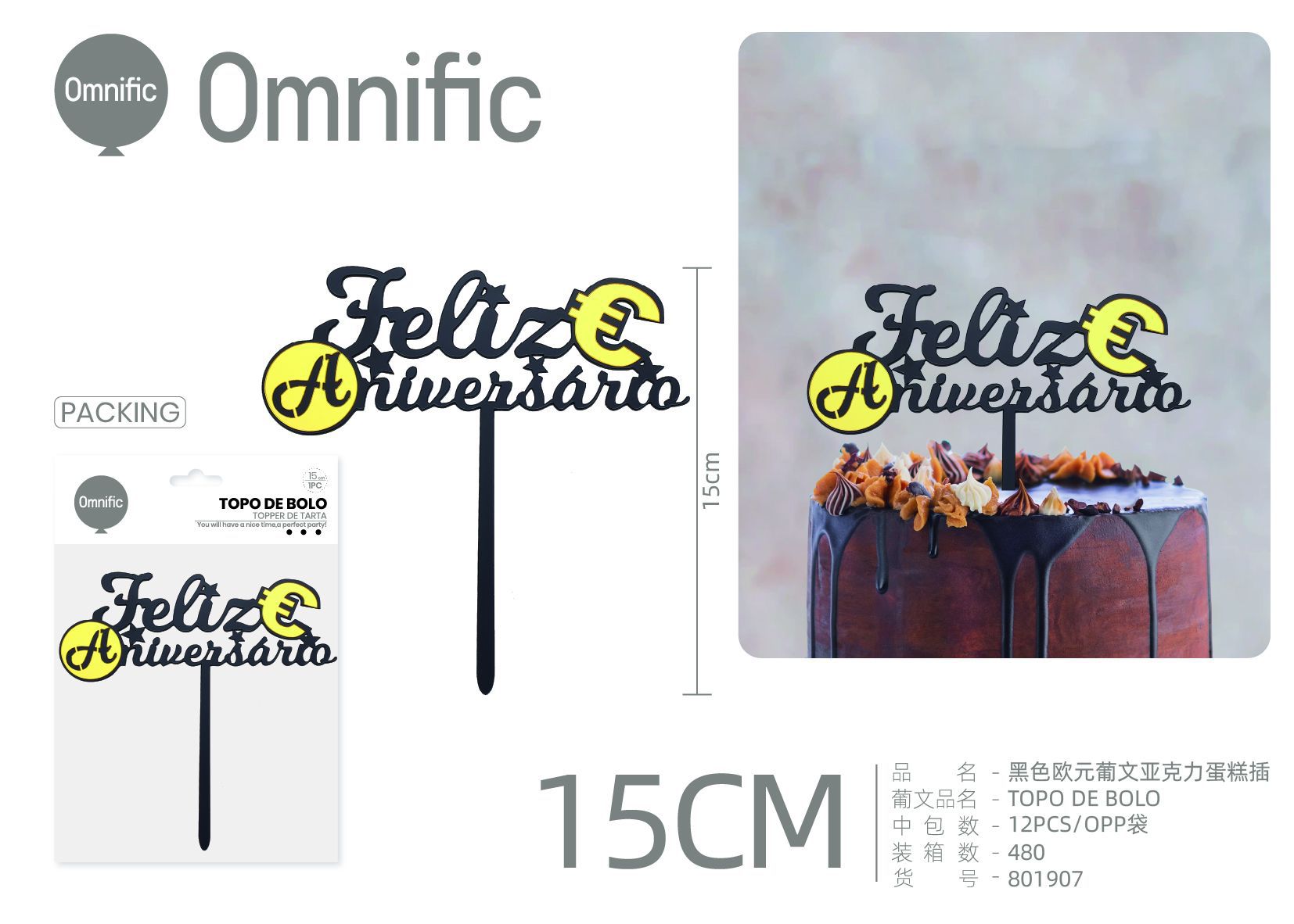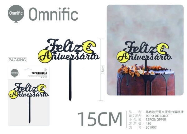 C.B. 5600936801402TOPO DE BOLO ACRILICO PRETO F.ANIVERSARIO