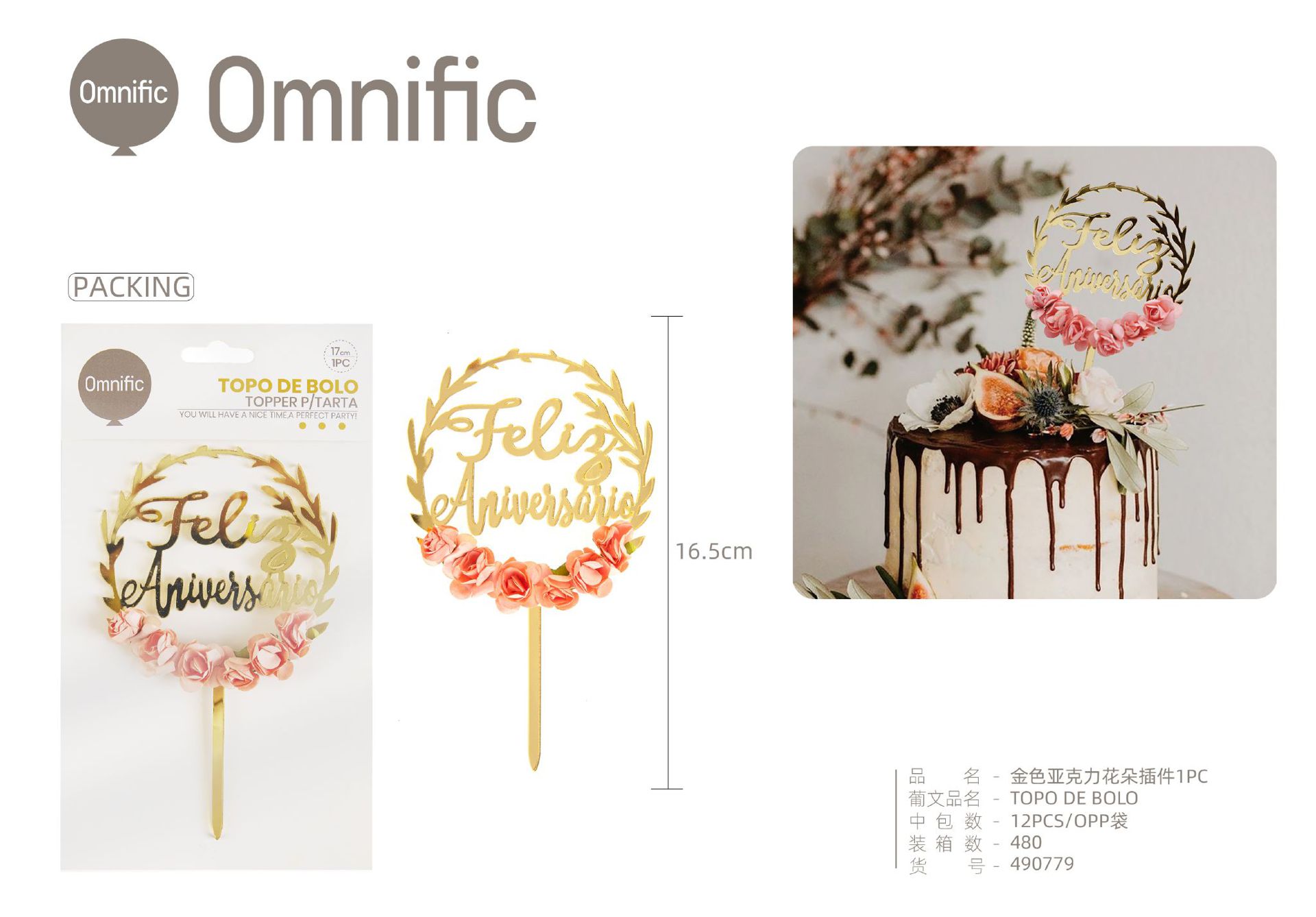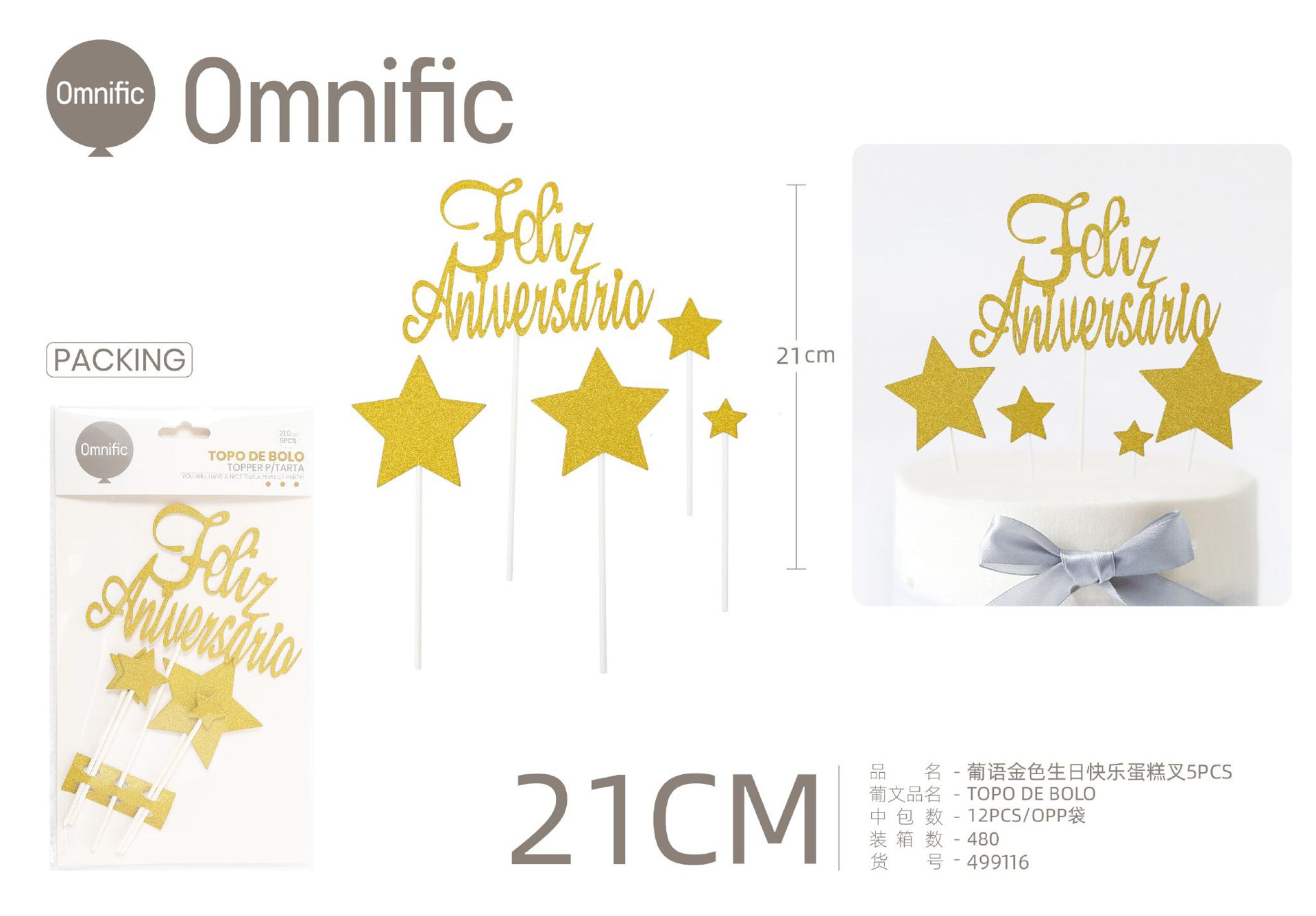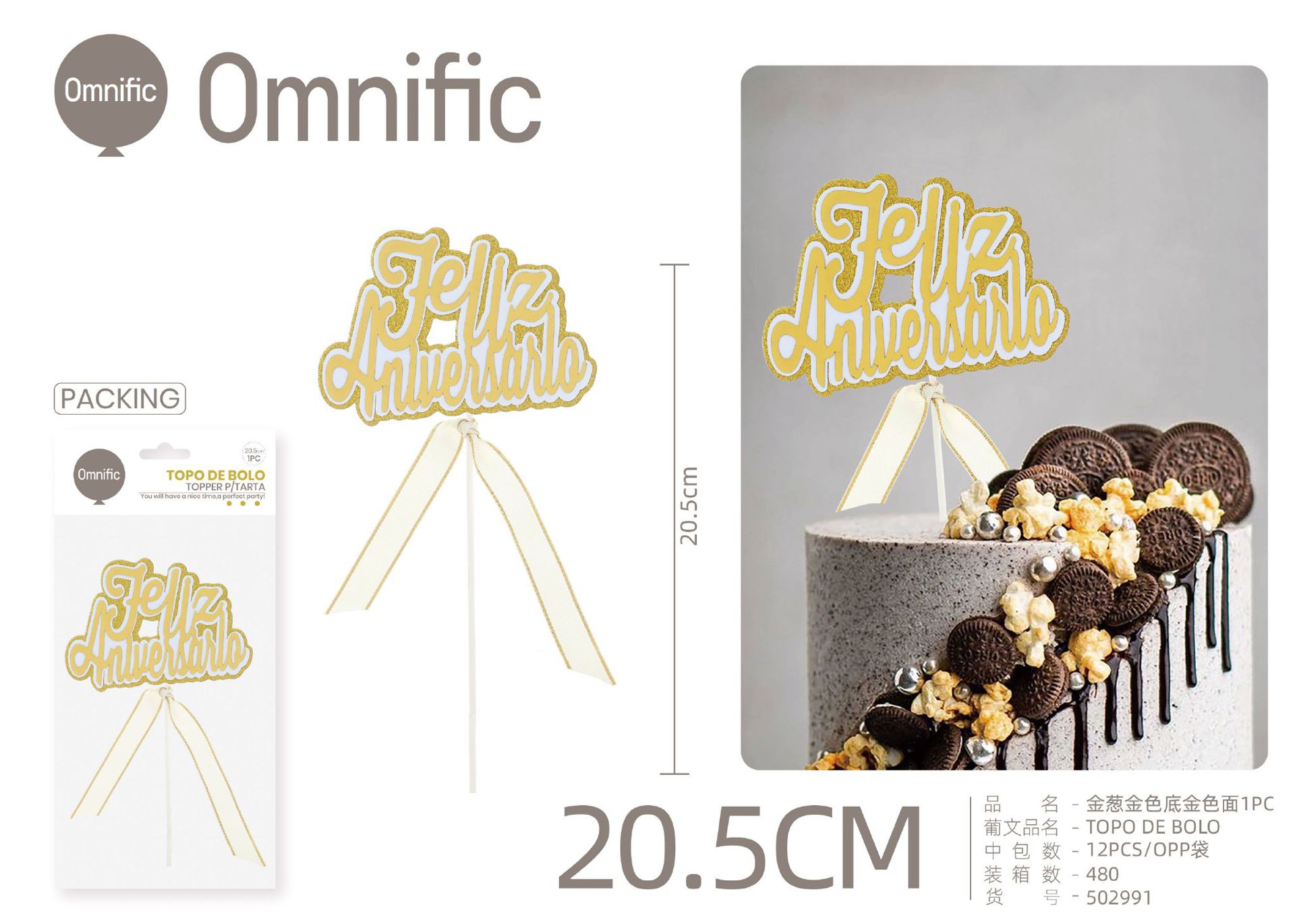 C.B. 5606858502991TOPO DE BOLO 1PCS DOURADO