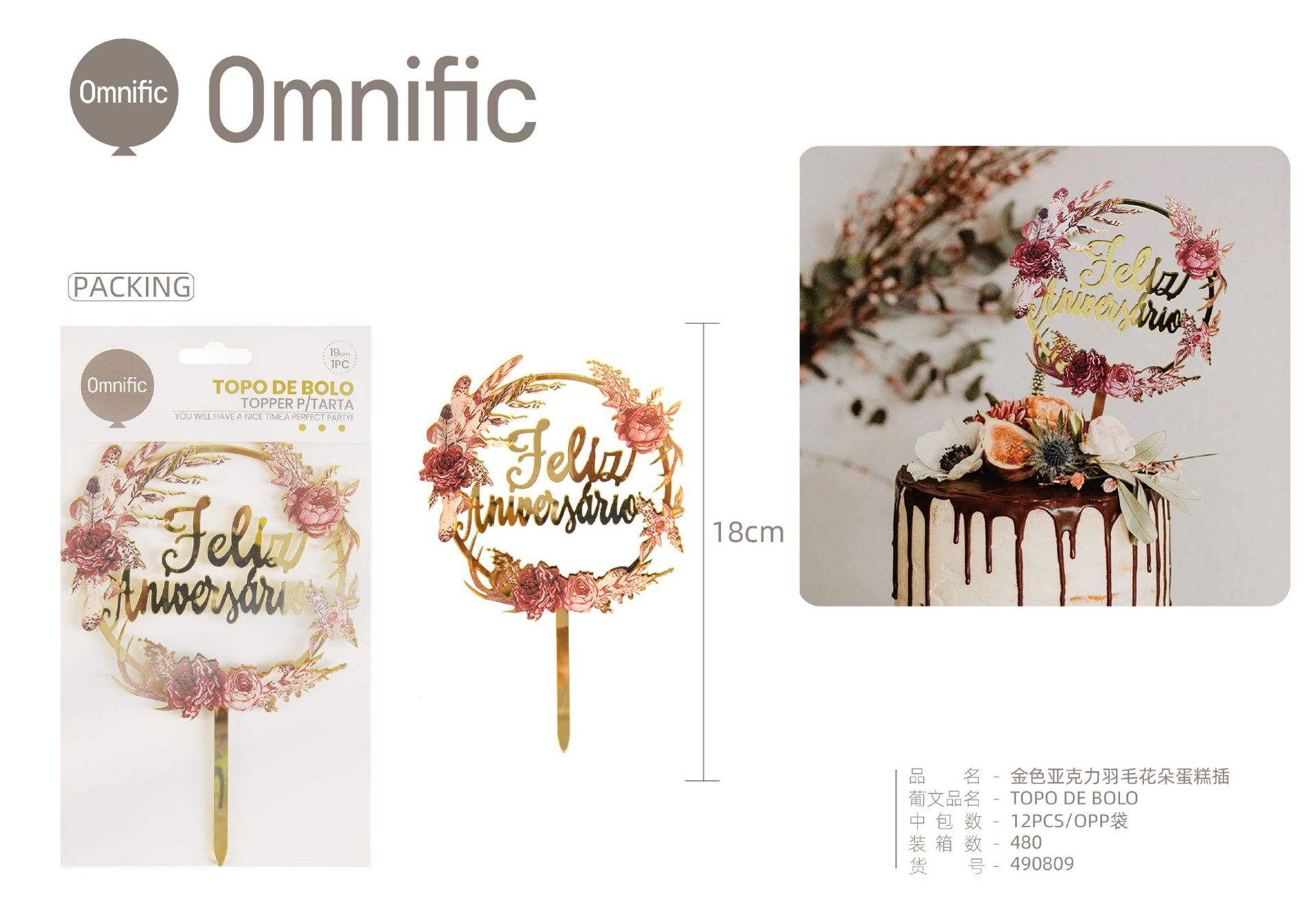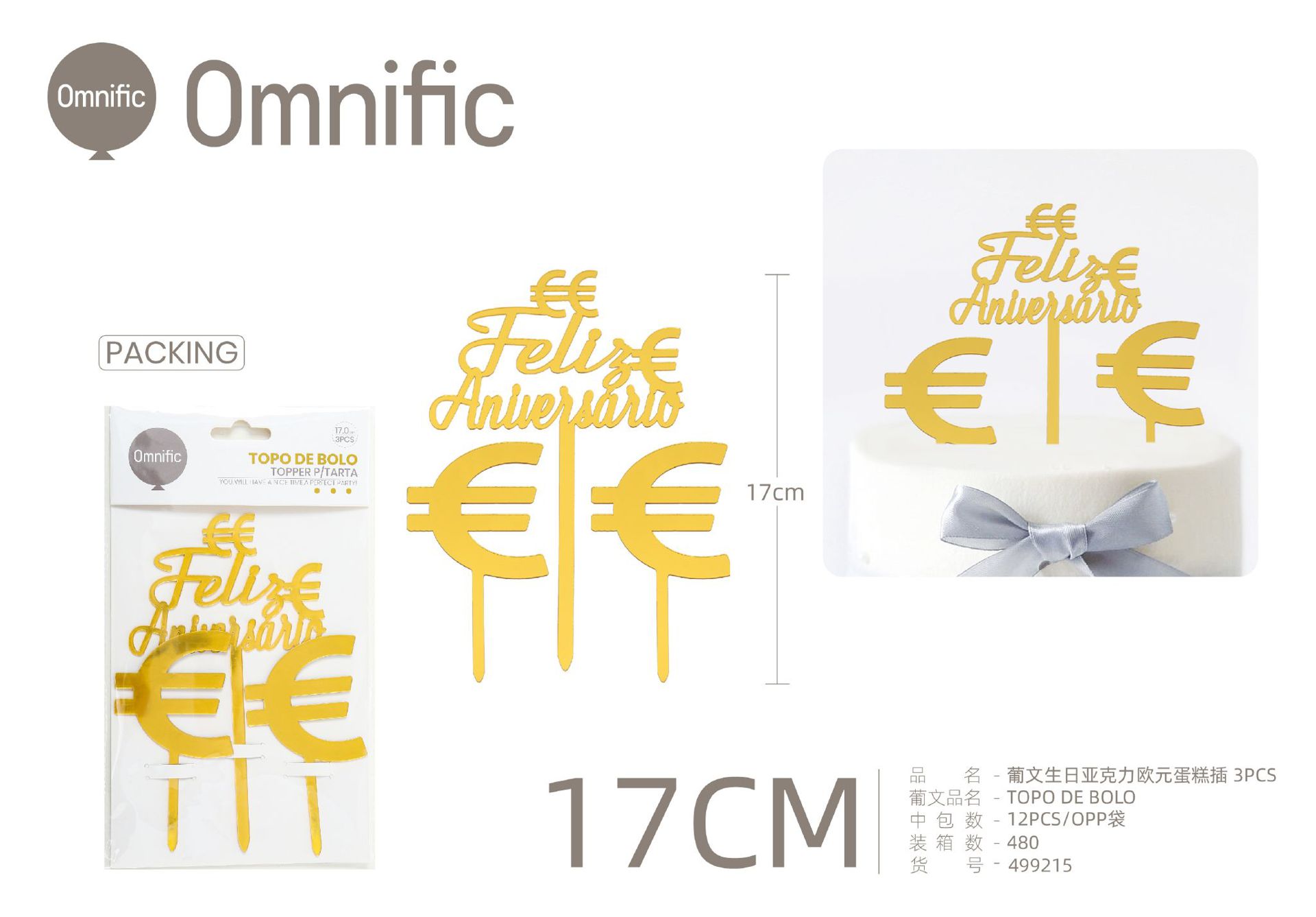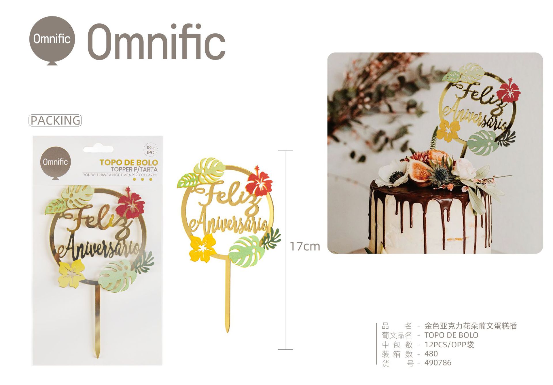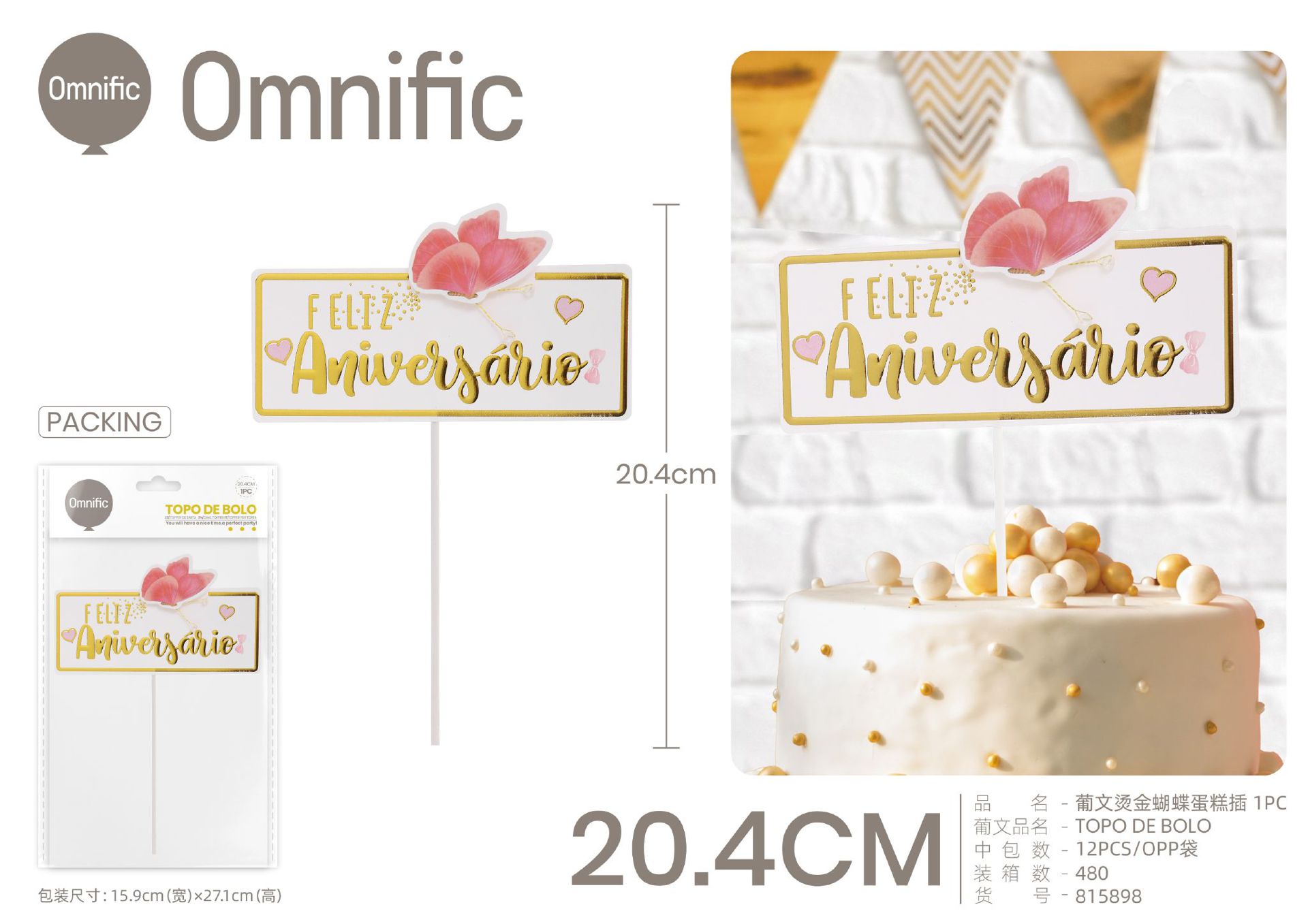 C.B. 5606858502991TOPO DE BOLO 1PCS DOURADO