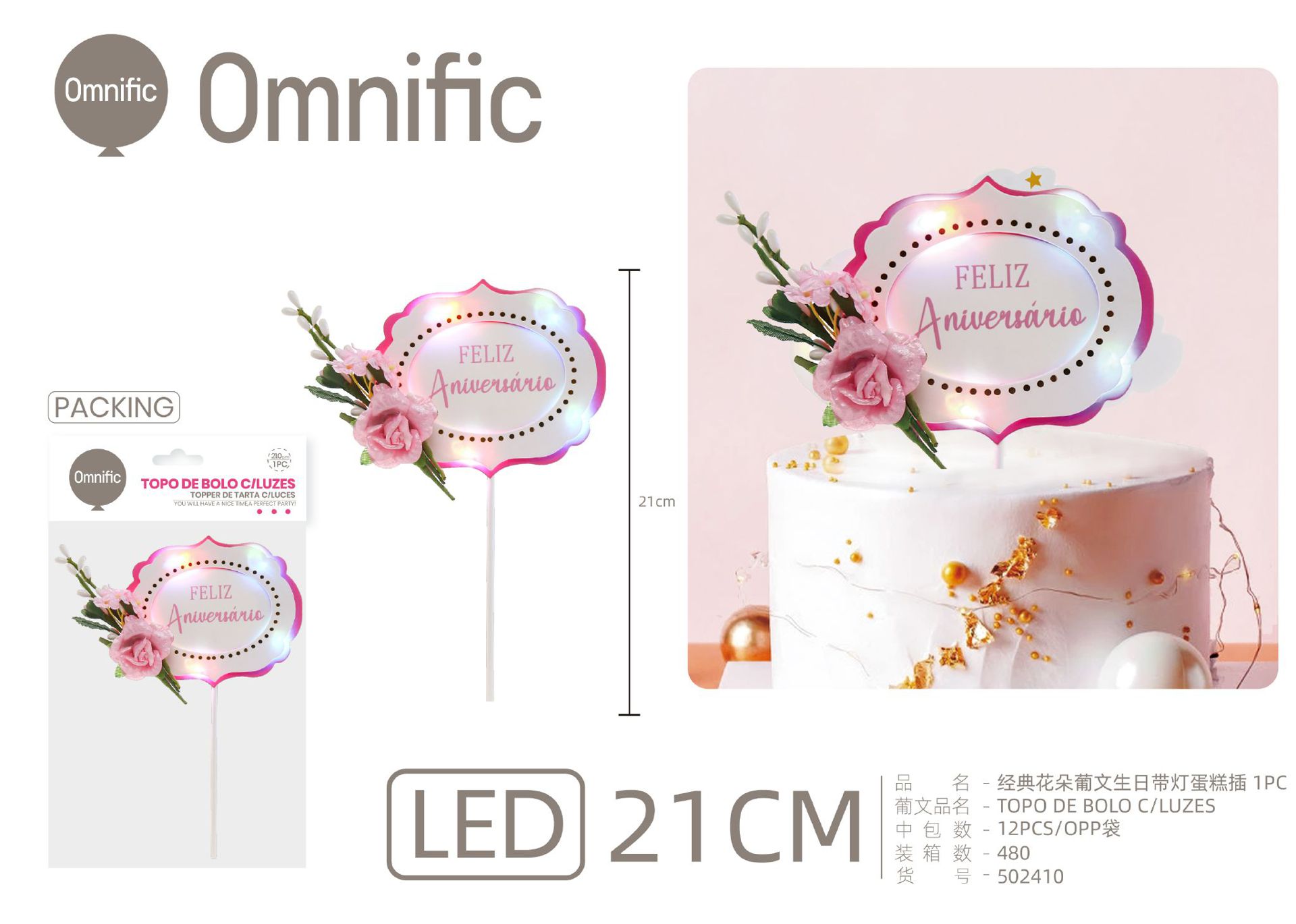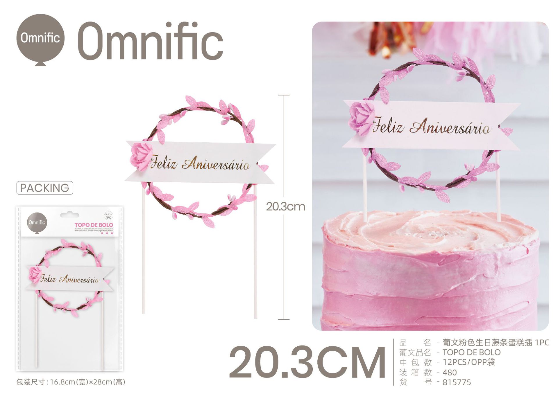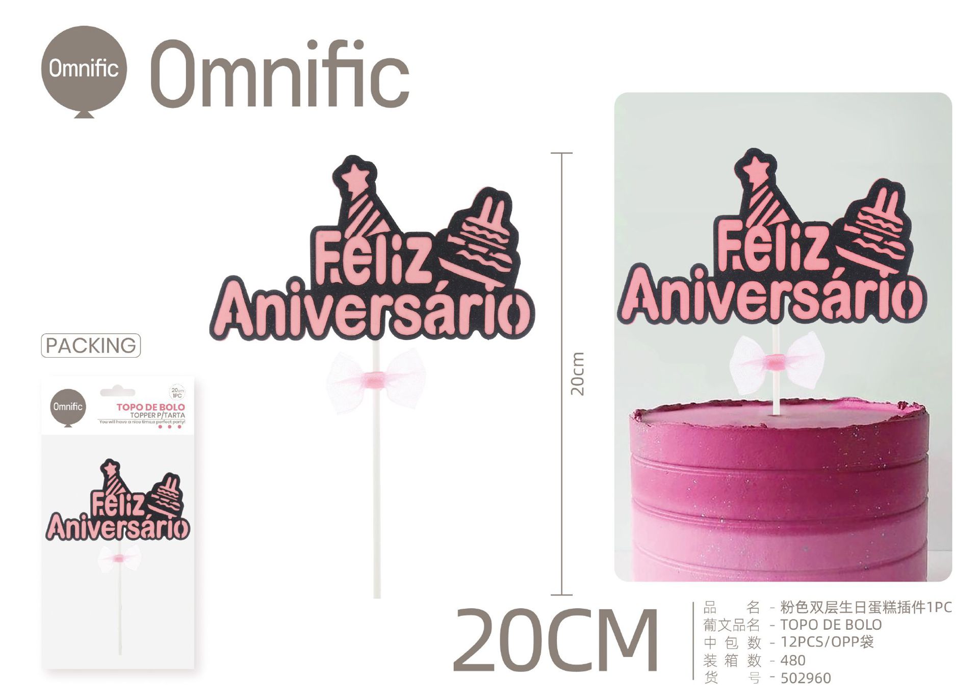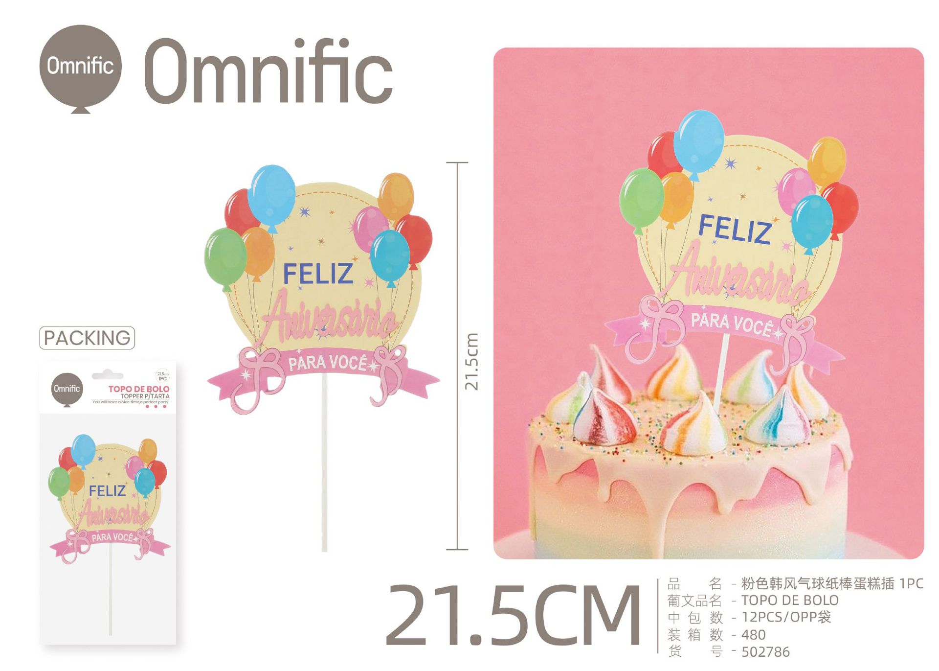 C.B. 5606858502786TOPO DE BOLO 1PCS ROSA