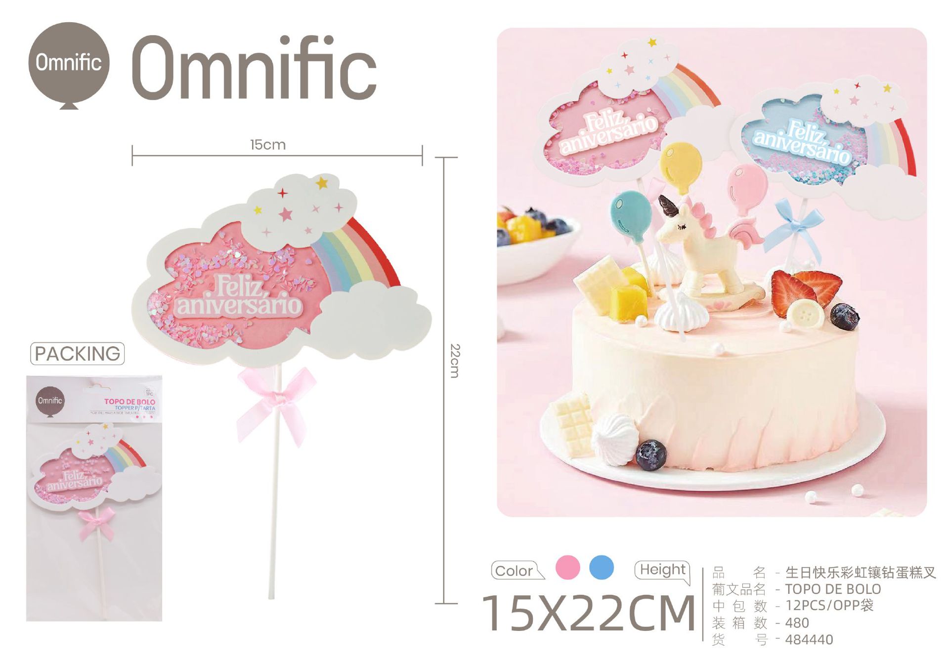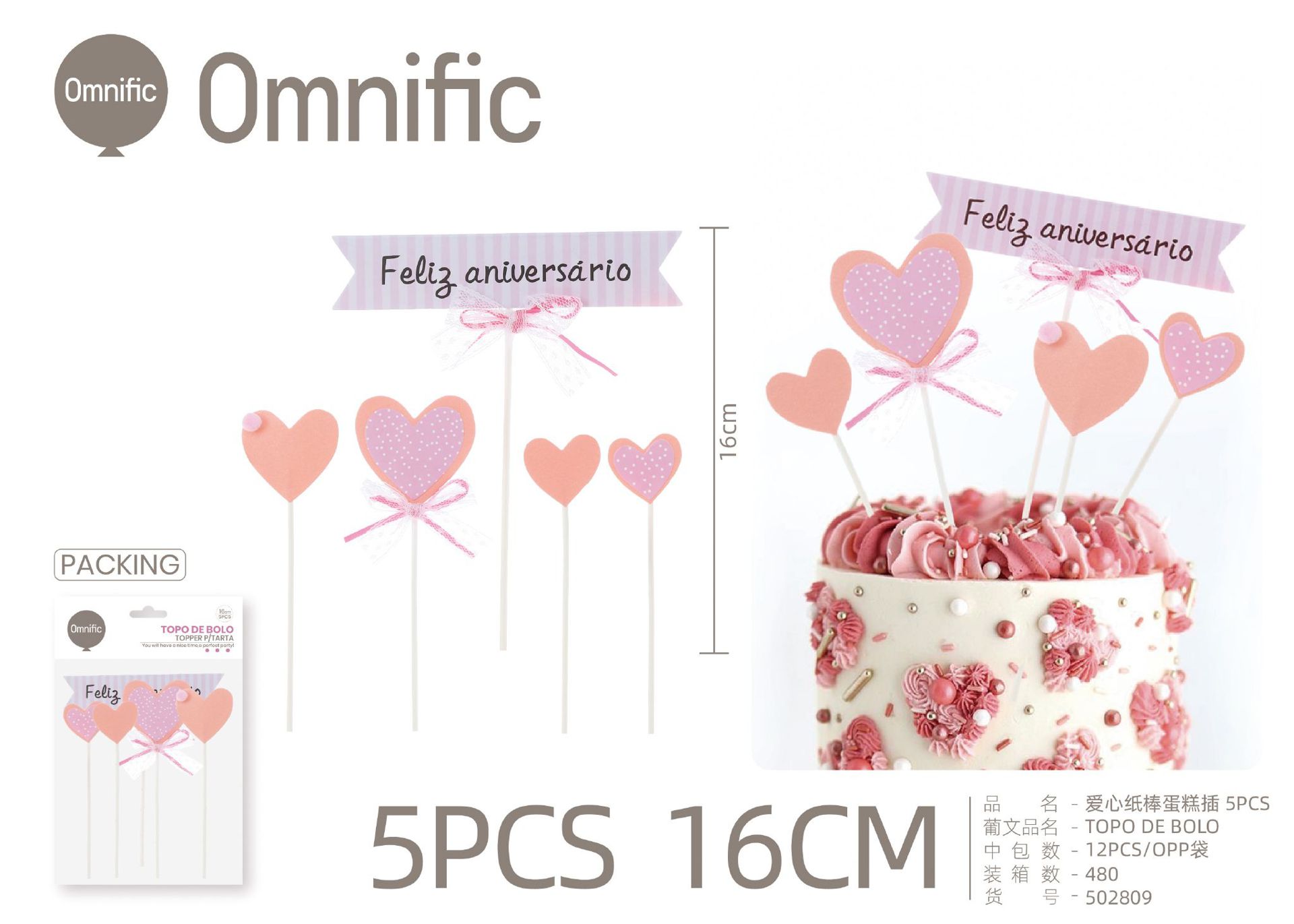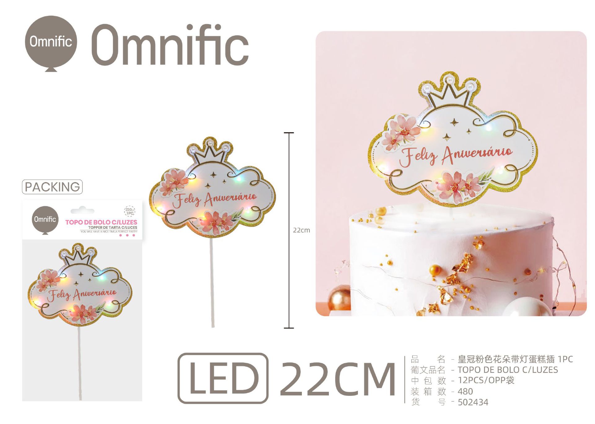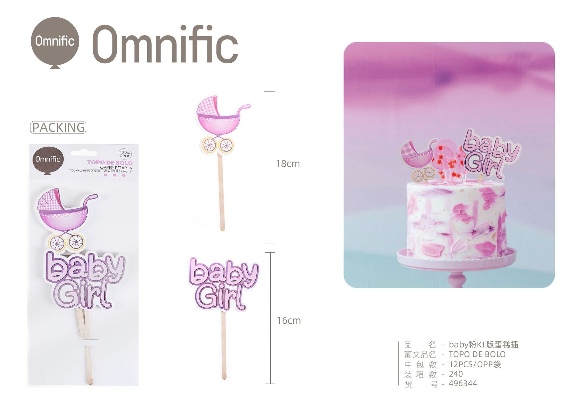 C.B. 5606858502786TOPO DE BOLO 1PCS ROSA