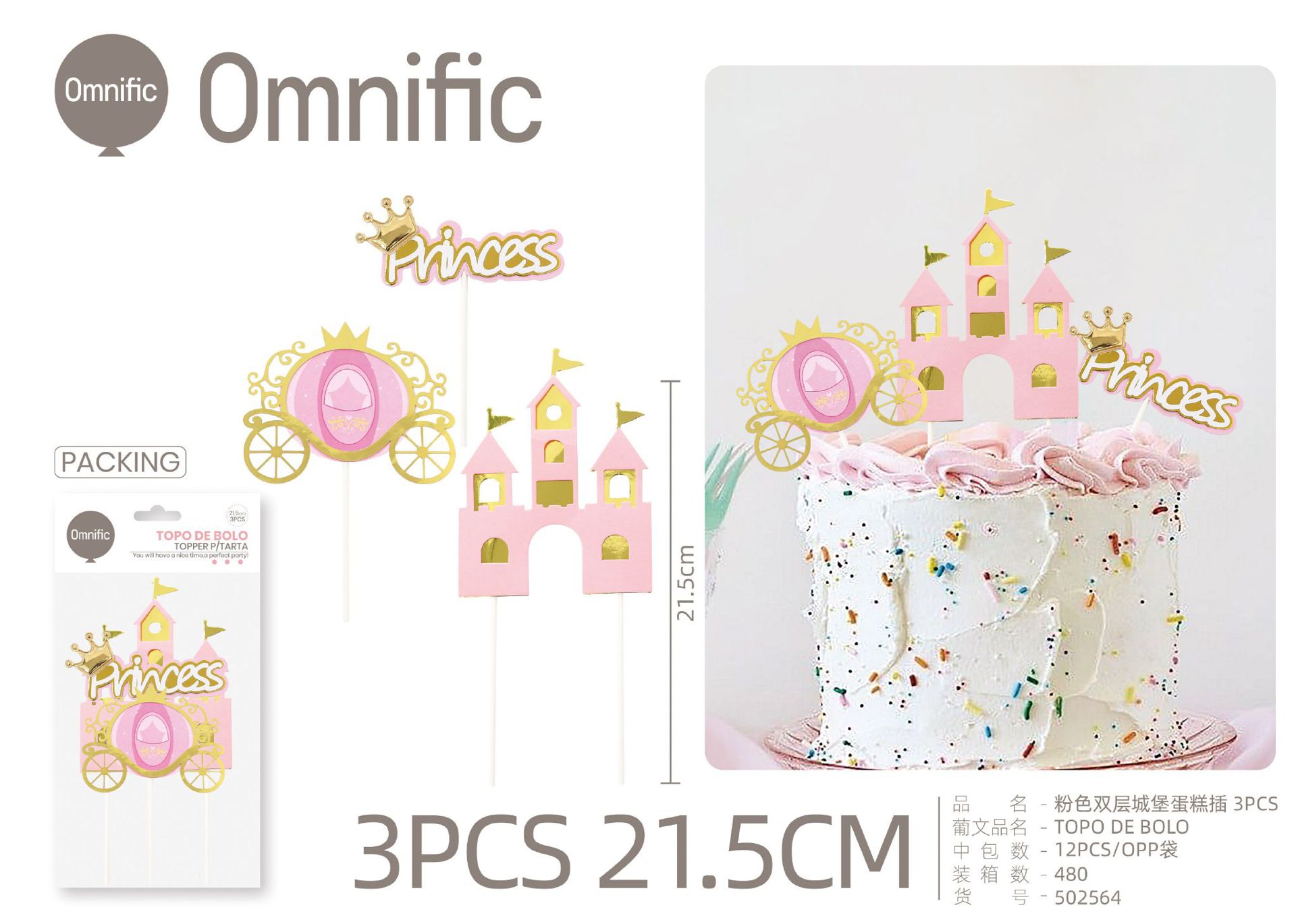 C.B. 5606858502564TOPO DE BOLO 3PCS ROSA