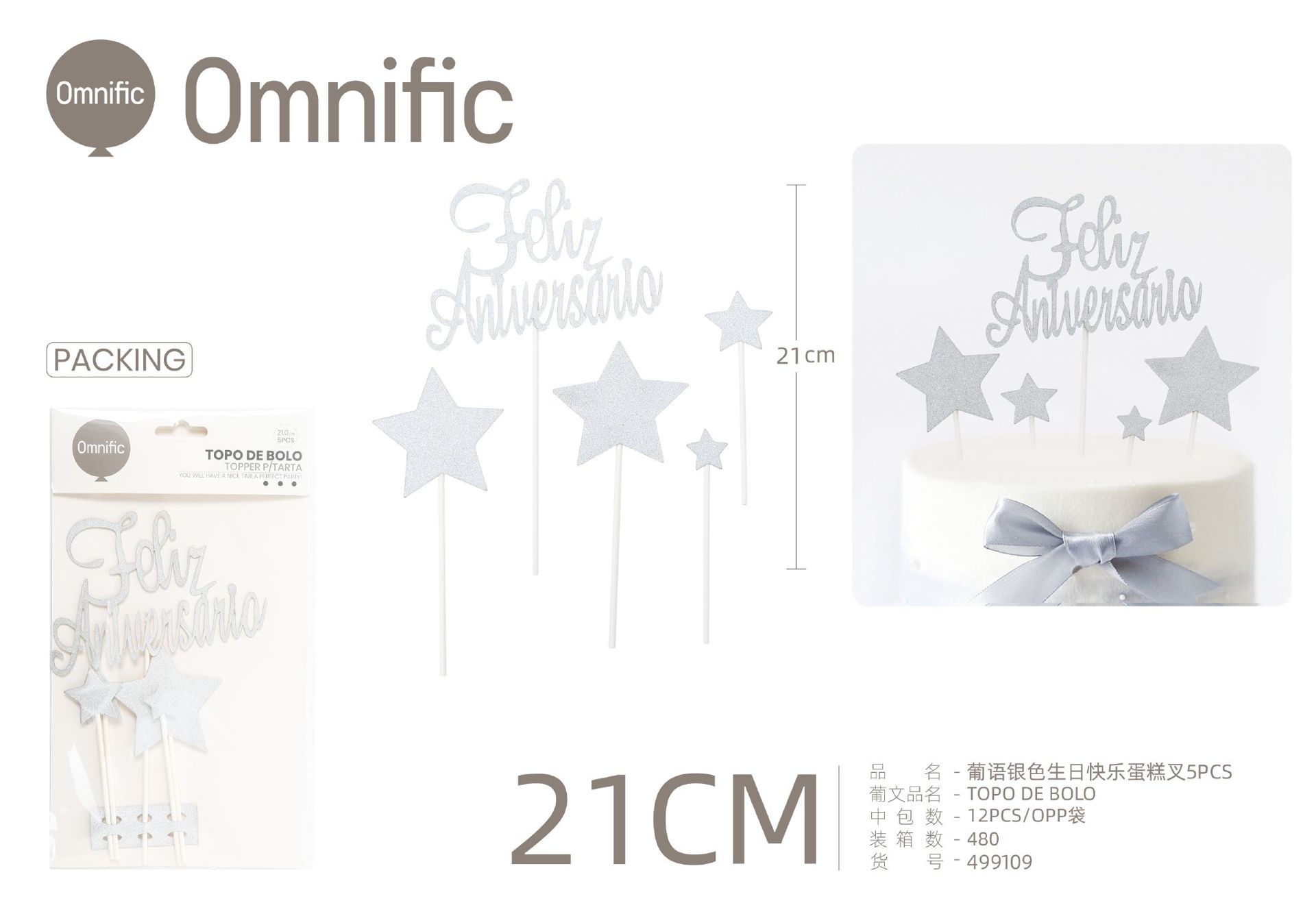 C.B. 5606858503004TOPO DE BOLO 1PCS PRATEADO