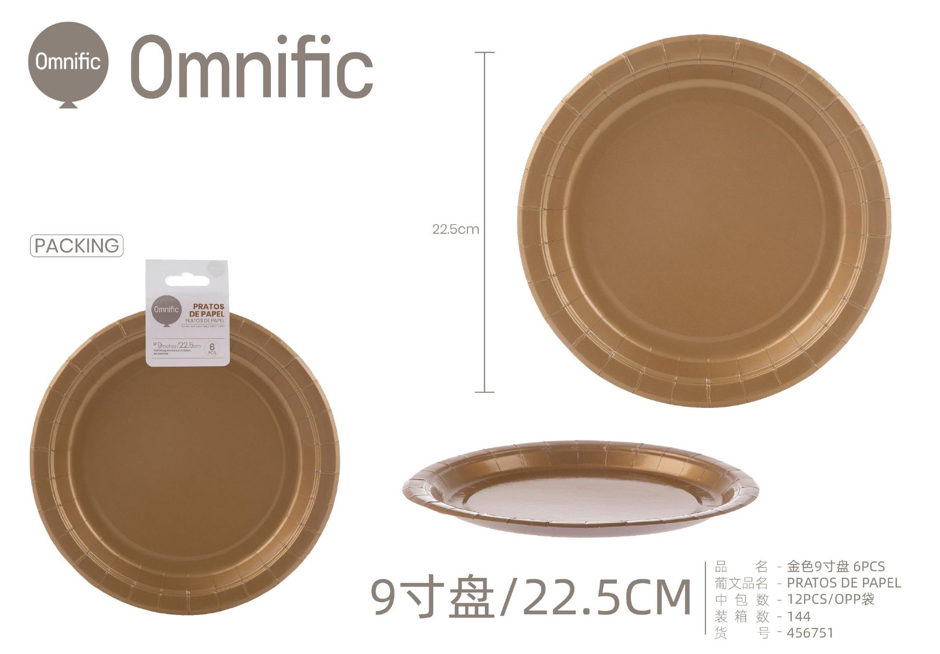 C.B. 5606858456751PRATO CARTAO DOURADO 9 POLEGADA 6PCS