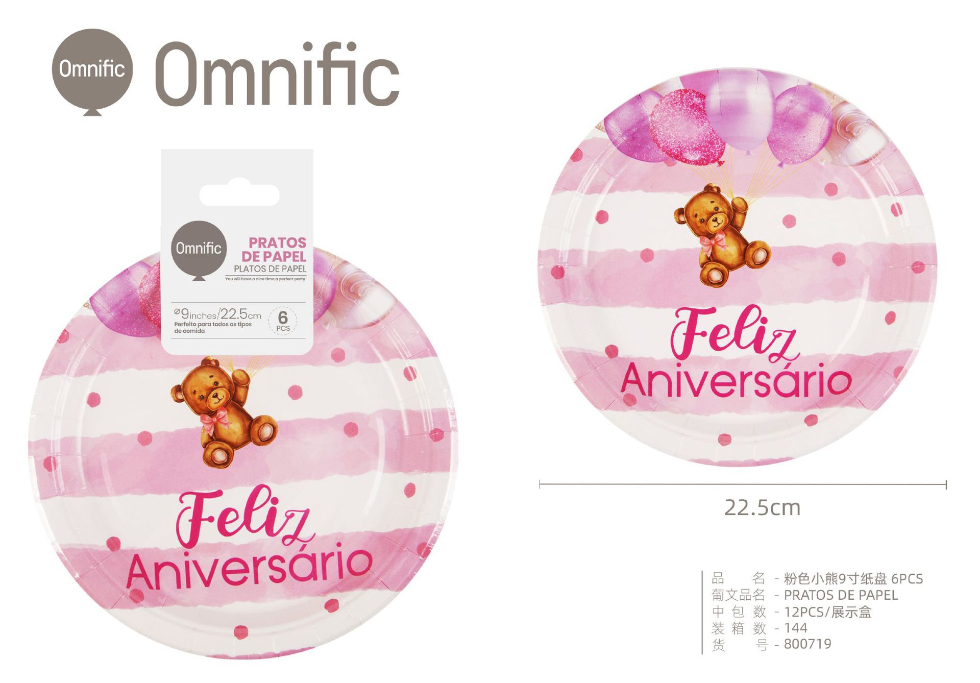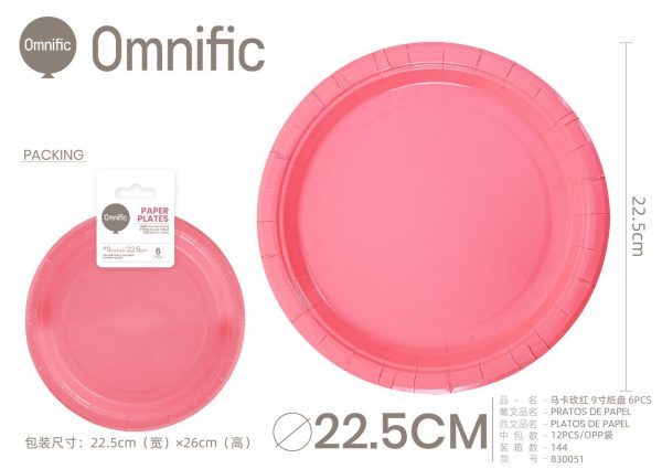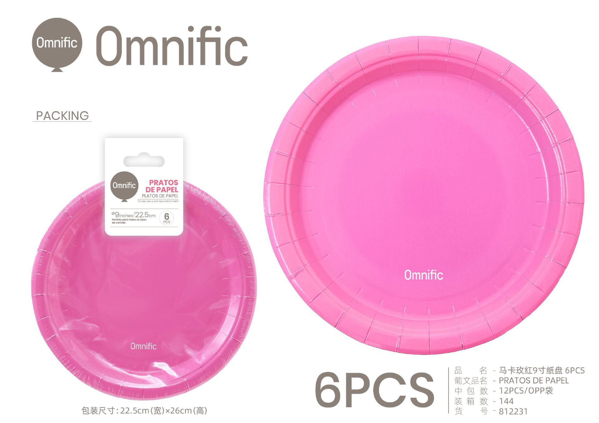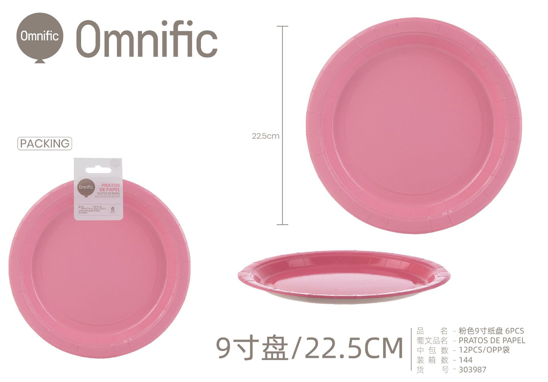 C.B. 5606858303987PRATOS PAPEL ROSA 9 POLEGADA 6PCS