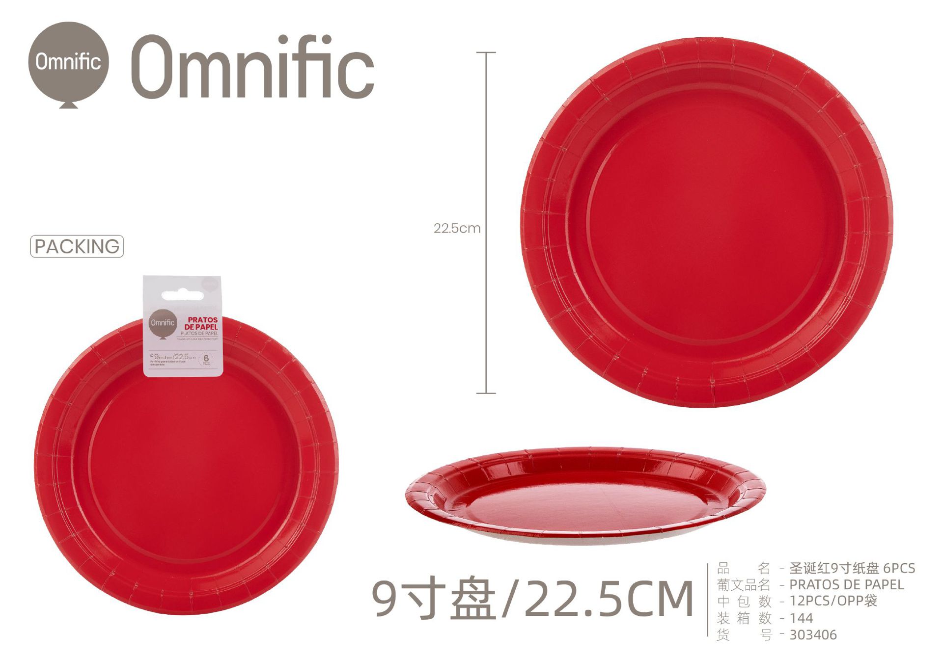 C.B. 5606858303406PRATOS PAPEL VERMELHO 9 POLEGADA 6PCS