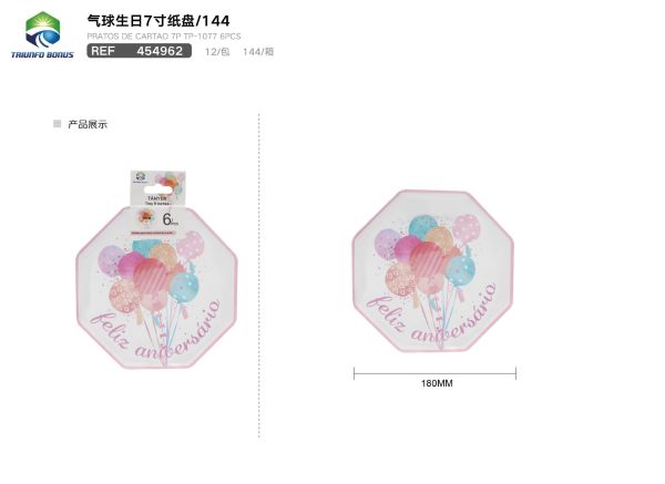 C.B. 5600936800627PRATOS DE PAPEL F.ANIVERSARIO 7P 6PCS