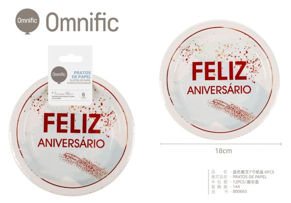 C.B. 5600936800665PRATOS DE PAPEL F.ANIVERSARIO 7P 6PCS
