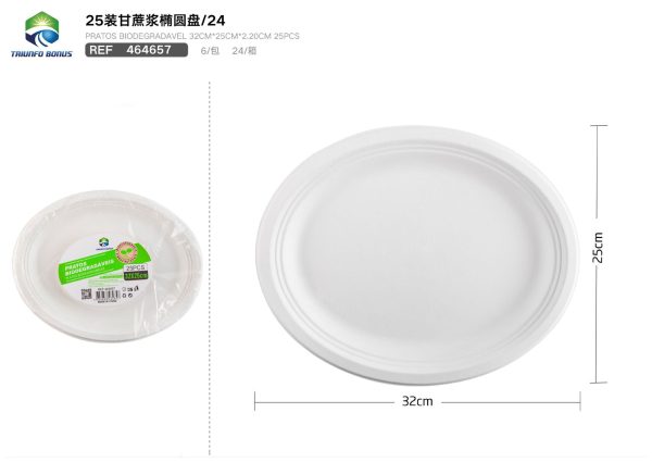 C.B. 5606858464657PRATOS BIODEGRADAVEL 32CM*25CM*2.20CM 25PCS