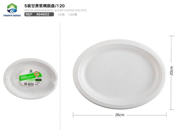 C.B. 5606858464602PRATOS BIODEGRADAVEL 26.5CM*19.90CM*2CM 5PCS