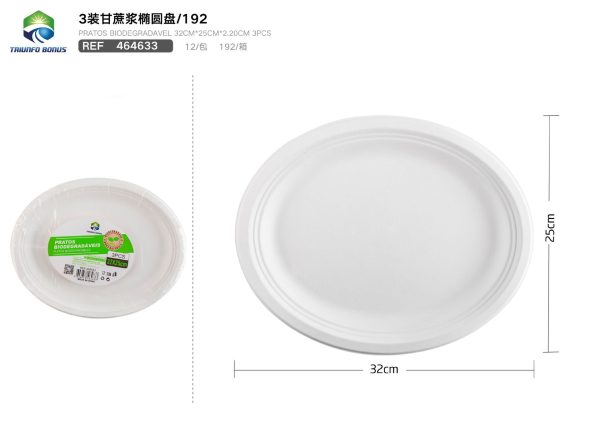 C.B. 5606858464633PRATOS BIODEGRADAVEL 32CM*25CM*2.20CM 3PCS