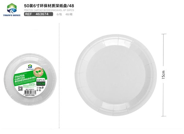 C.B. 5606858463674PRATOS CARTAO BIODEGRADAVEL 6P 50PCS