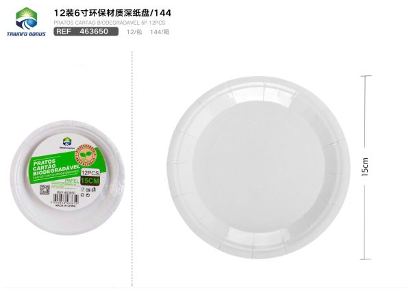 C.B. 5606858463735PRATOS CARTAO BIODEGRADAVEL 6P 12PCS