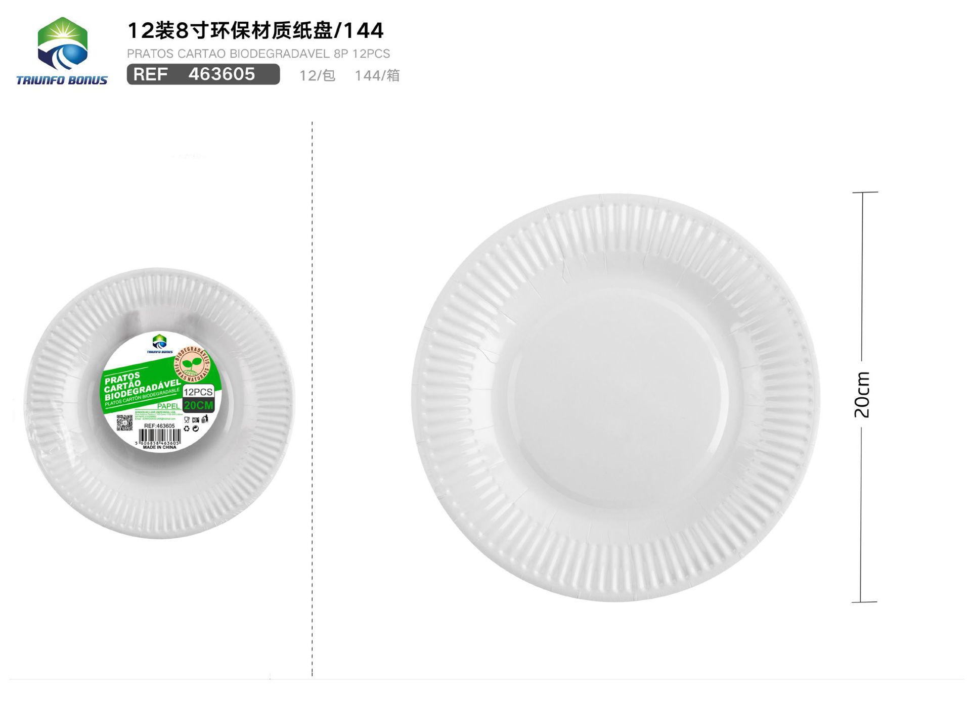 C.B. 5606858463605PRATOS CARTAO BIODEGRADAVEL 8P 12PCS