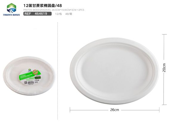 C.B. 5606858464619PRATOS BIODEGRADAVEL 26.5CM*19.90CM*2CM 12PCS