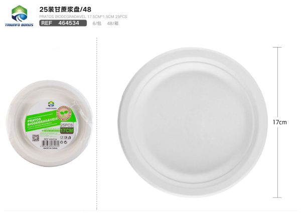C.B. 5606858464534PRATOS BIODEGRADAVEL 17.5CM*1.5CM 25PCS