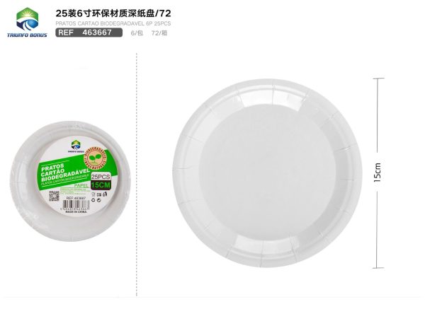 C.B. 5606858463667PRATOS CARTAO BIODEGRADAVEL 6P 25PCS