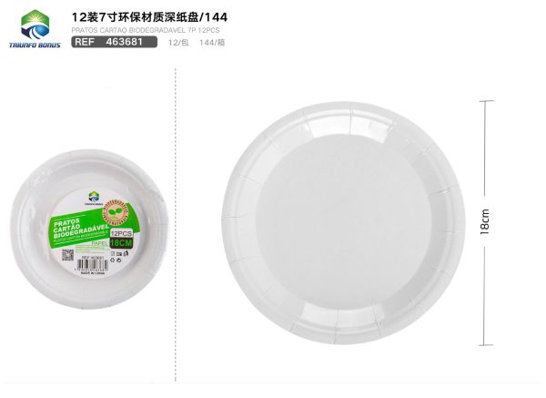 C.B. 5606858463681PRATOS CARTAO BIODEGRADAVEL 7P 12PCS