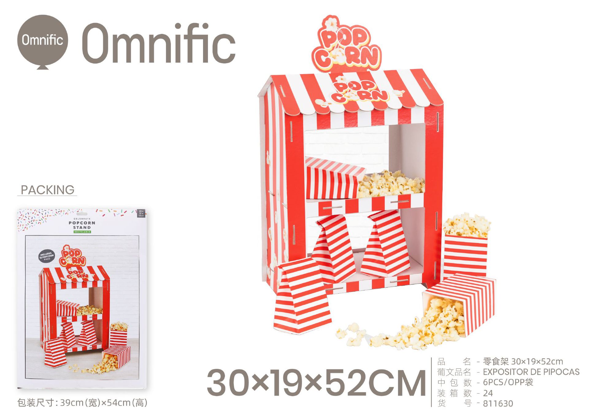 C.B. 5600936811630EXPOSITOR DE PIPOCAS QUALIDADE ALIMENTAR 30*19*52CM