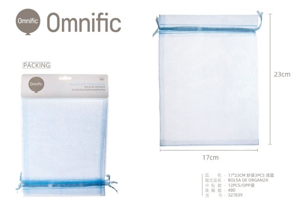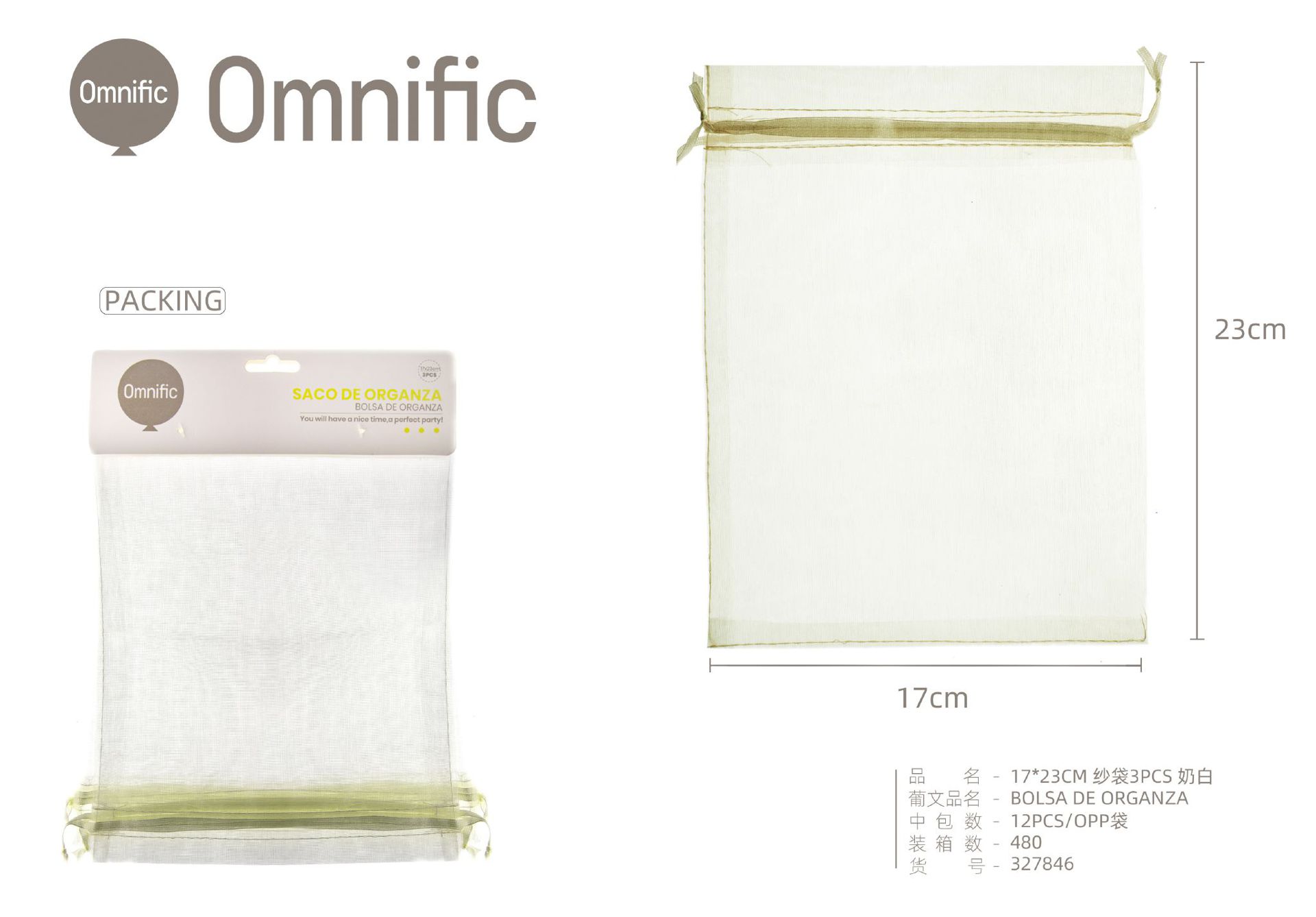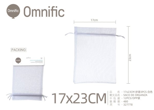 C.B. 5606858327839SACO ORGANZA P/DOCE A.CLARO 17*23CM 3PCS