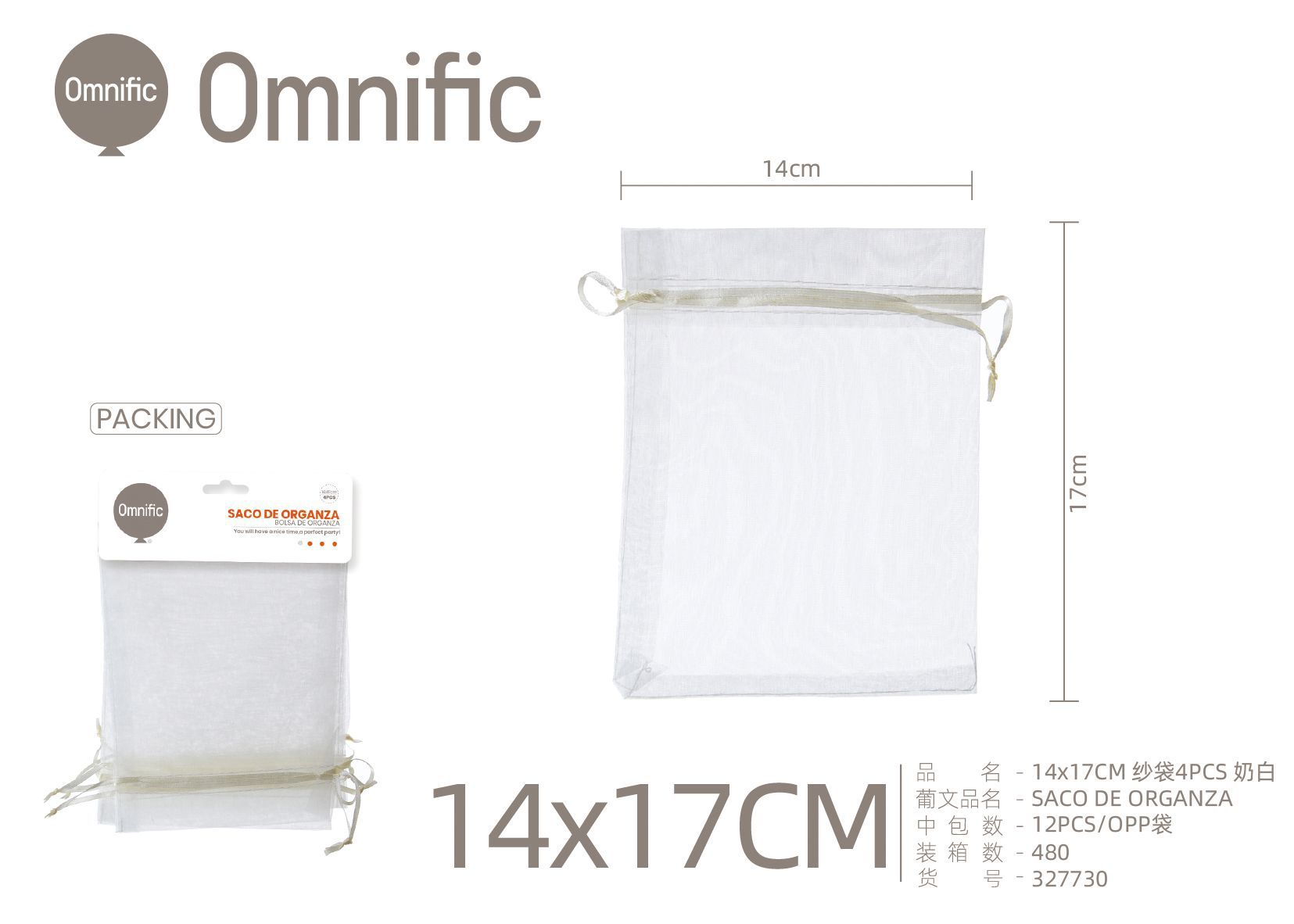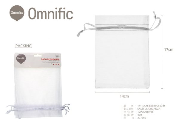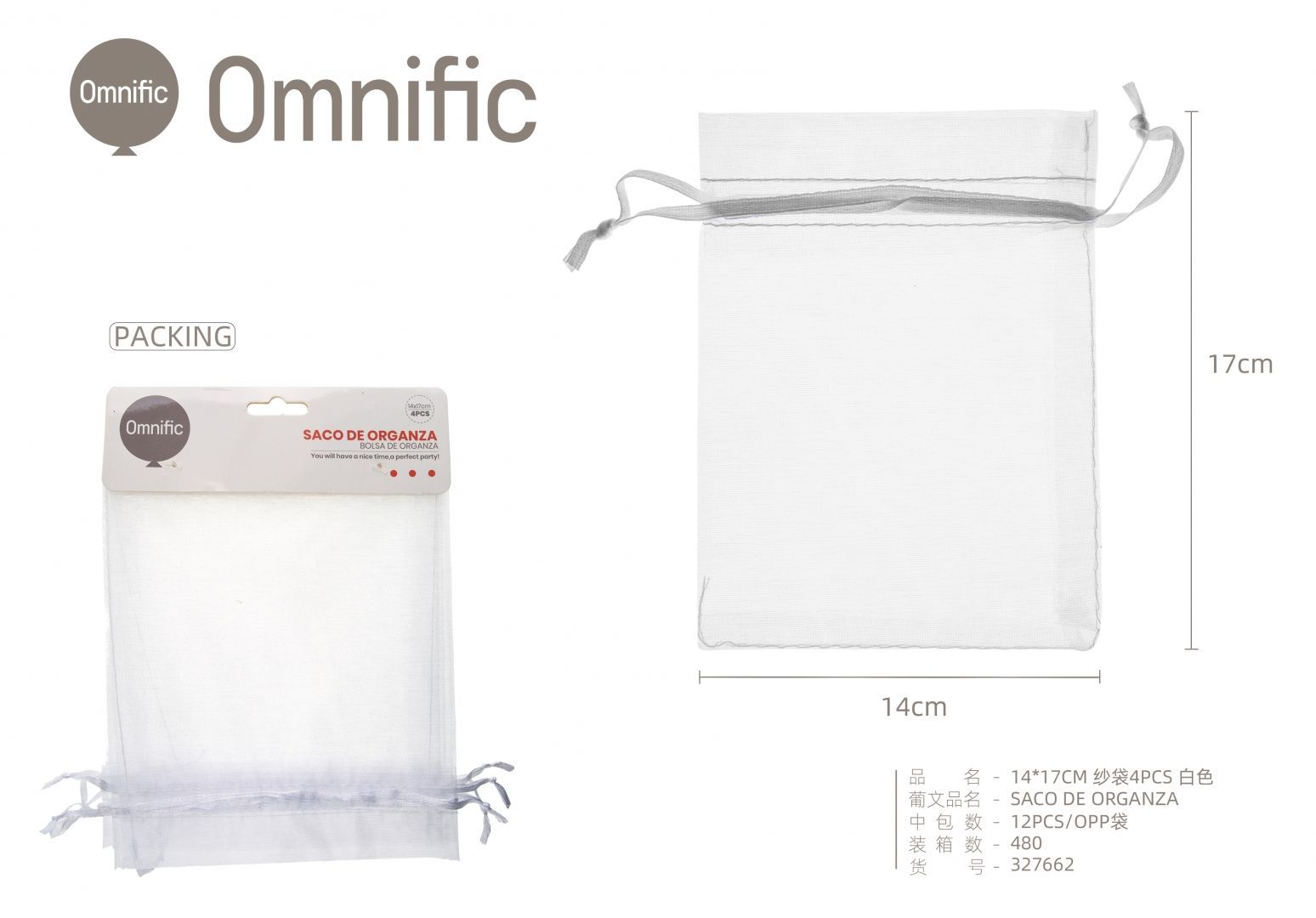 C.B. 5606858327662SACO ORGANZA P/DOCE BRANCO 14*17CM 4PCS