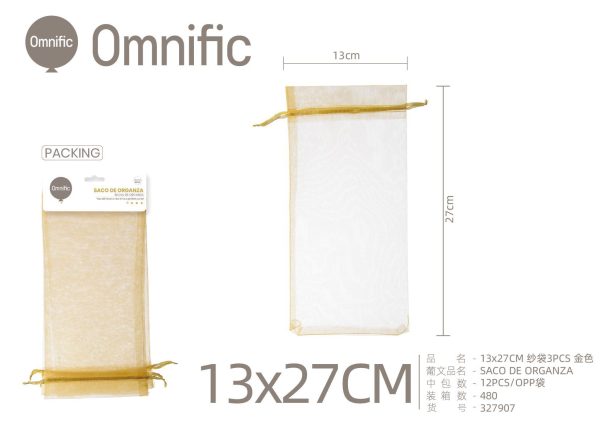 C.B. 5606858327570SACO ORGANZA P/DOCE DOURADO 11*13CM 5PCS