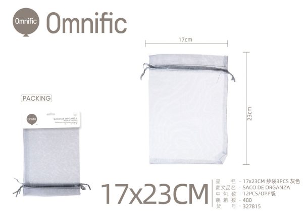 C.B. 5606858327815SACO ORGANZA P/DOCE PRATEADO 17*23CM 3PCS
