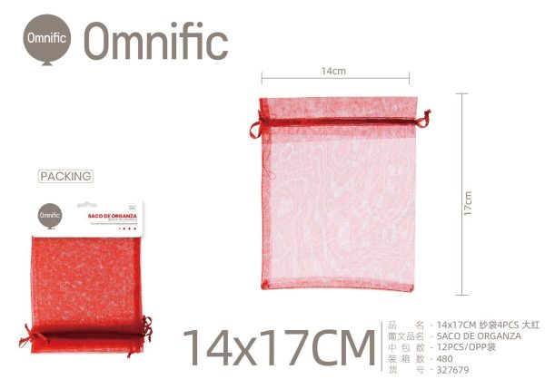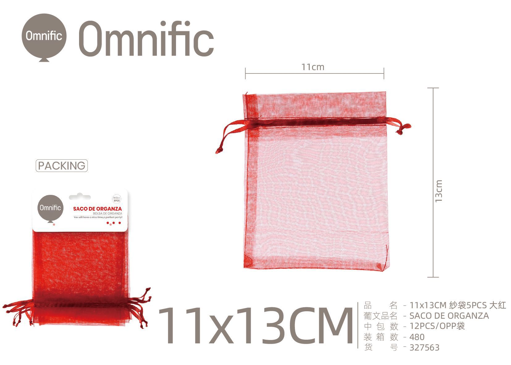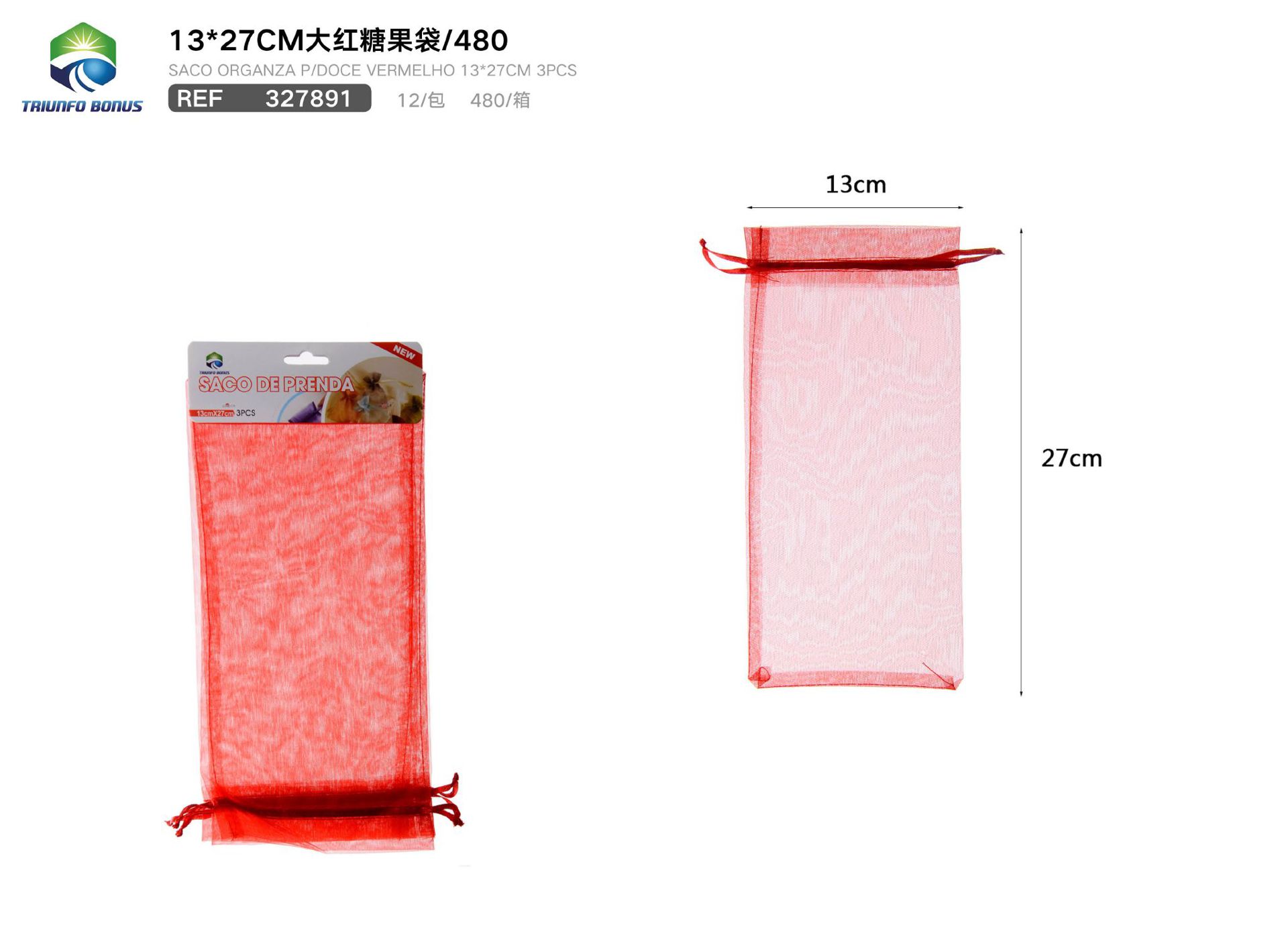 C.B. 5606858327891SACO ORGANZA P/DOCE VERMELHO 13*27CM 3PCS