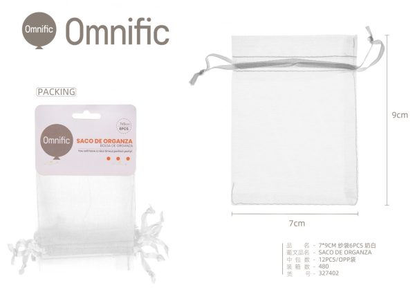 C.B. 5606858327334SACO ORGANZA P/DOCE BRANCO 7*9CM 6PCS