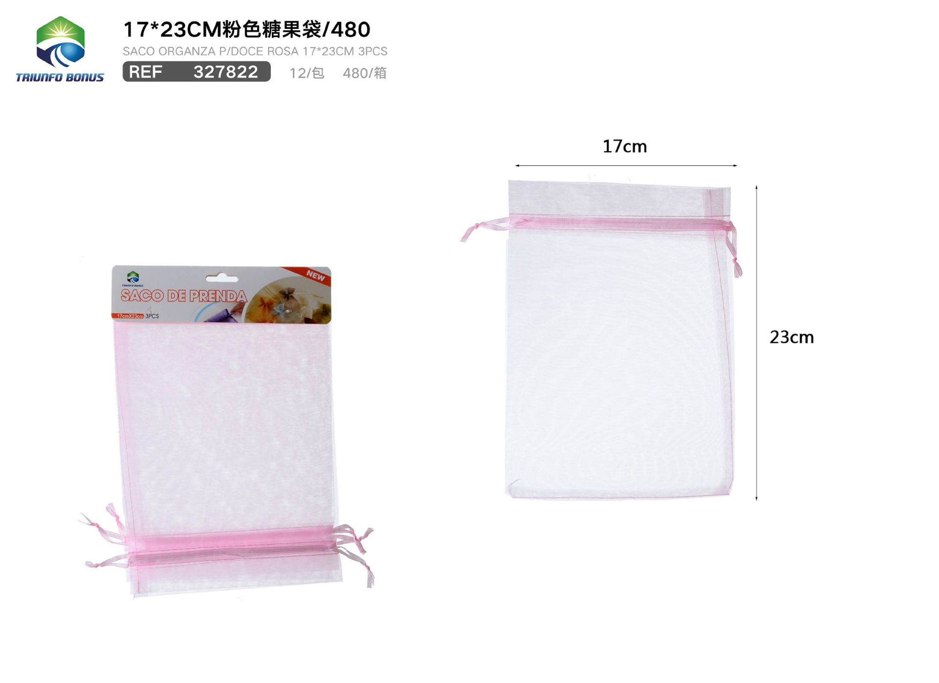 C.B. 5606858327822SACO ORGANZA P/DOCE ROSA 17*23CM 3PCS
