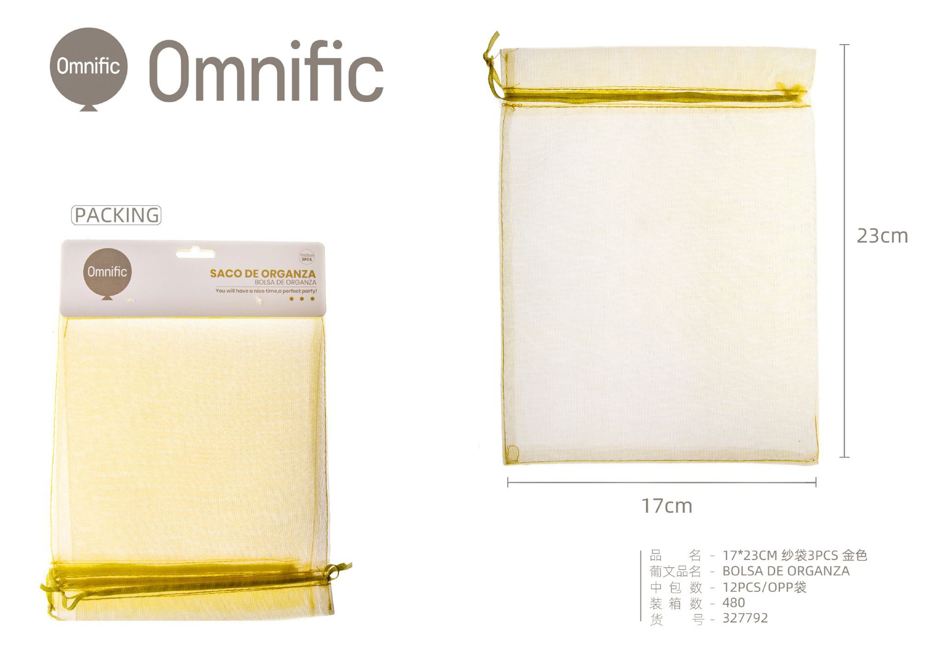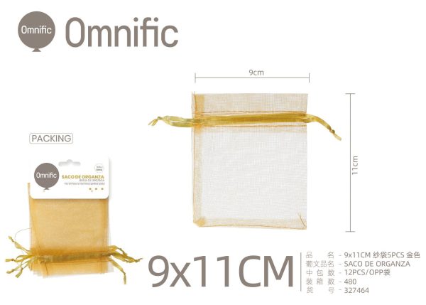 C.B. 5606858327464SACO ORGANZA P/DOCE DOURADO 9*11CM 5PCS