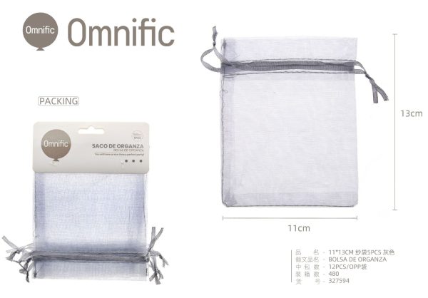C.B. 5606858327594SACO ORGANZA P/DOCE PRATEADA 11*13CM 5PCS