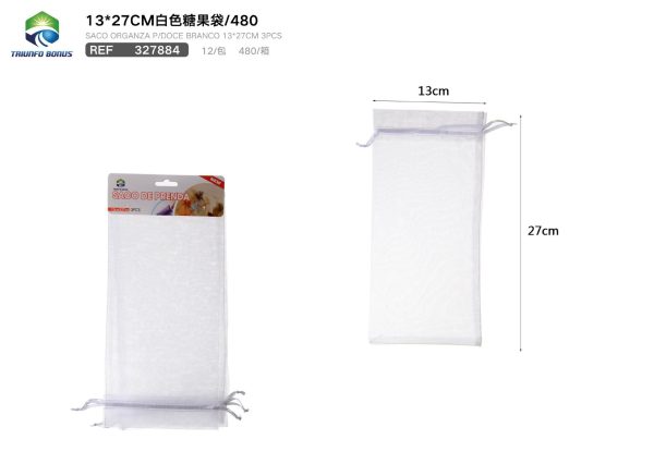 C.B. 5606858327884SACO ORGANZA P/DOCE BRANCO 13*27CM 3PCS