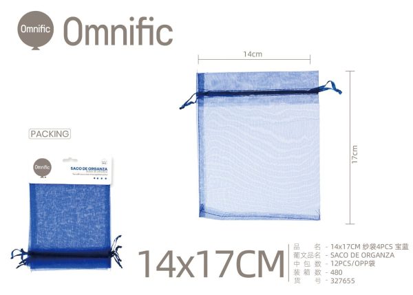 C.B. 5606858327723SACO DE DOCES AZUL CLARO 14*17CM 4PCS