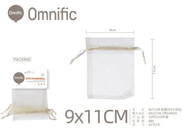 C.B. 5606858327624SACO ORGANZA P/DOCE BRANCO 11*13CM 5PCS
