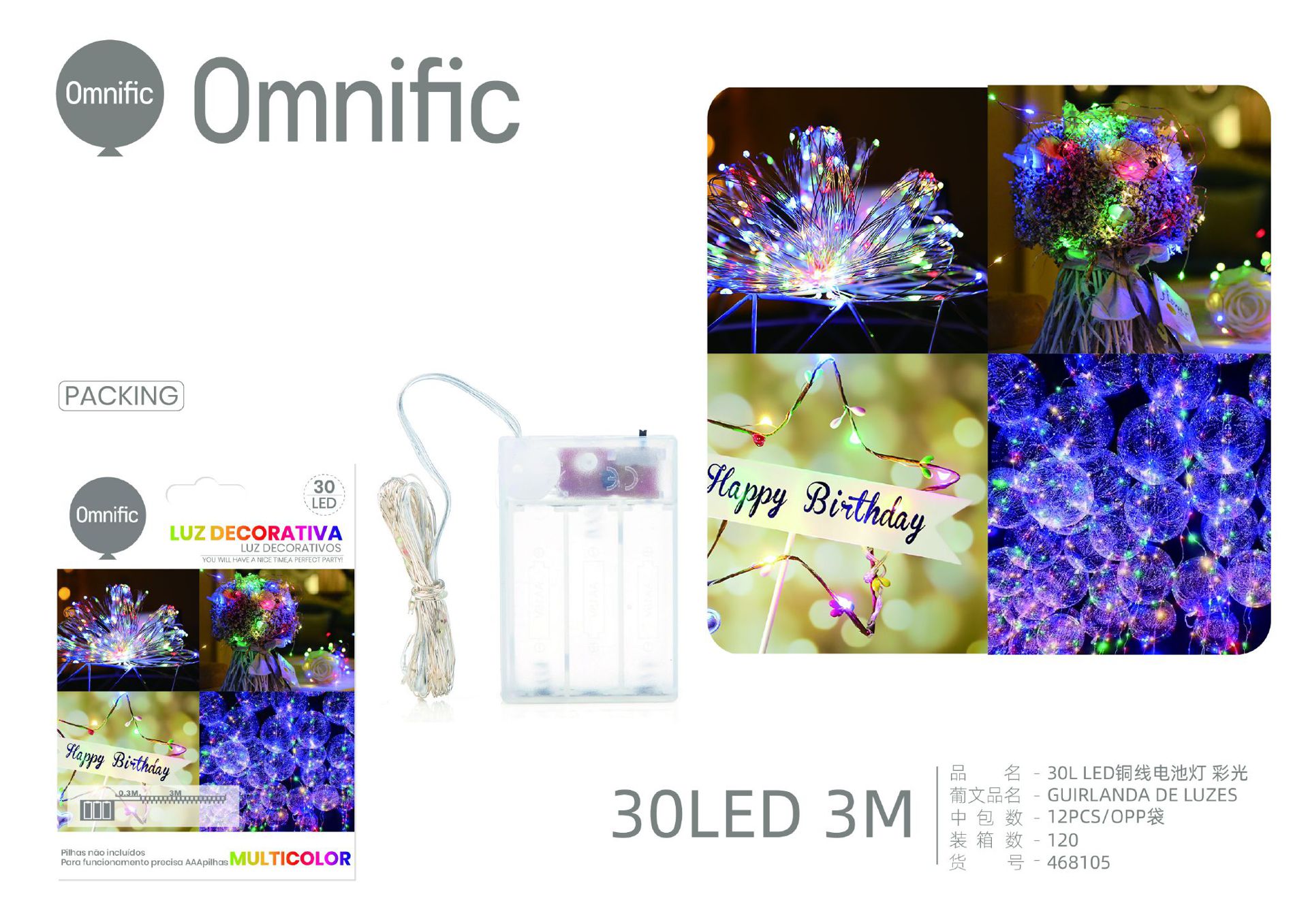 C.B. 5606858468105LUZ DECORATIVO A PILHA 30L LED 3M CORES