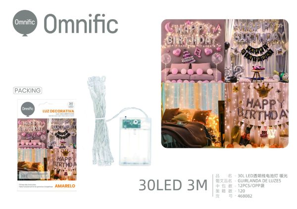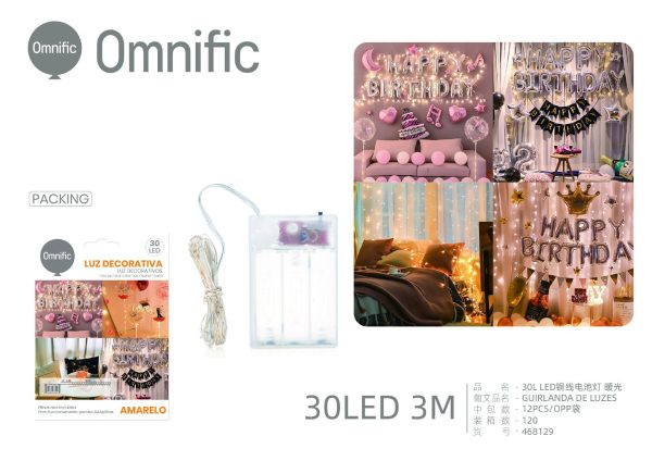 C.B. 5606858468082LUZ DECORATIVO A PILHA 30L LED 3M AMARELO