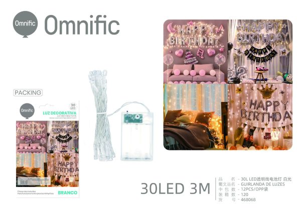 C.B. 5606858468068LUZ DECORATIVO A PILHA 30L LED 3M BRANCO