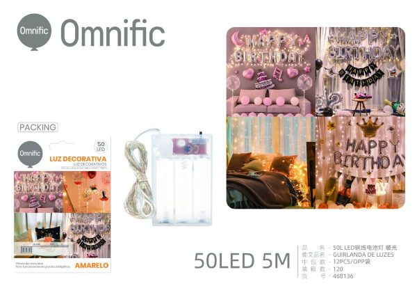 C.B. 5606858468136LUZ DECORATIVO A PILHA 50L LED 5M AMARELO