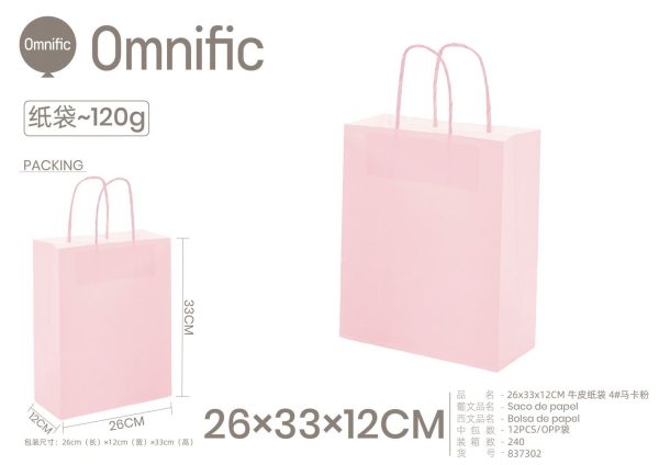 C.B. 5600936837302SACO DE PAPEL KRAFT 26*33*12CM ROSA PASTEL