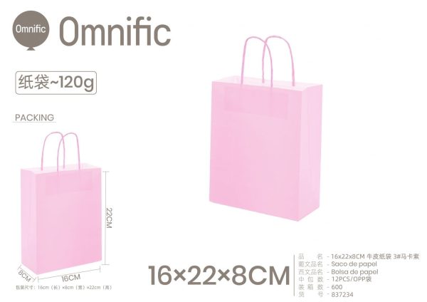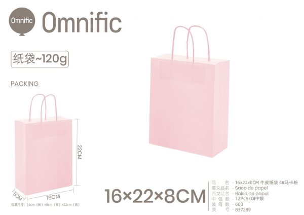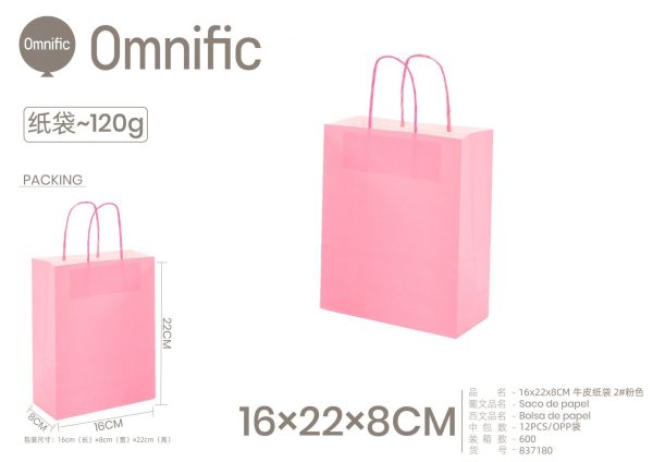 C.B. 5600936837289SACO DE PAPEL KRAFT 16*22*8CM ROSA PASTEL