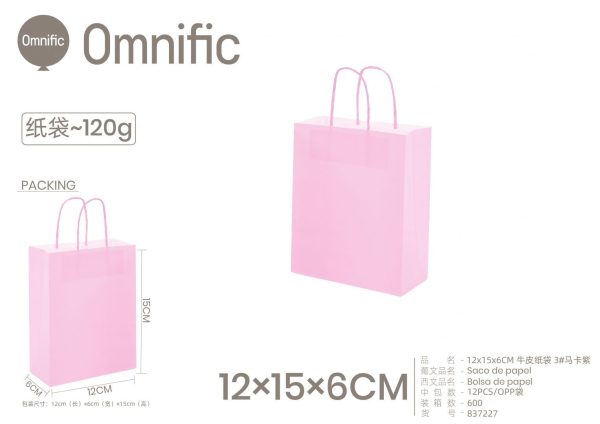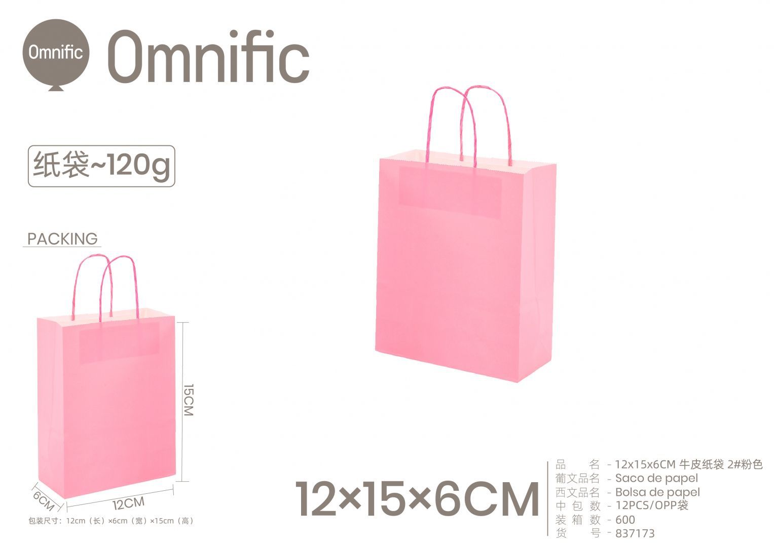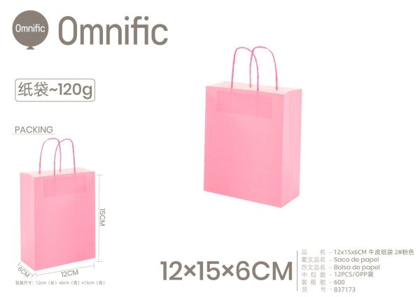 C.B. 5600936837173SACO DE PAPEL KRAFT 12*15*6CM ROSA