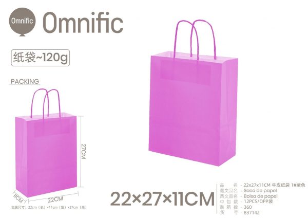 C.B. 5600936837142SACO DE PAPEL KRAFT 22*27*11CM ROXO