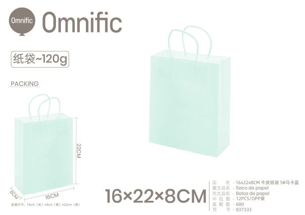 C.B. 5600936837333SACO DE PAPEL KRAFT 16*22*8CM AZUL PASTEL