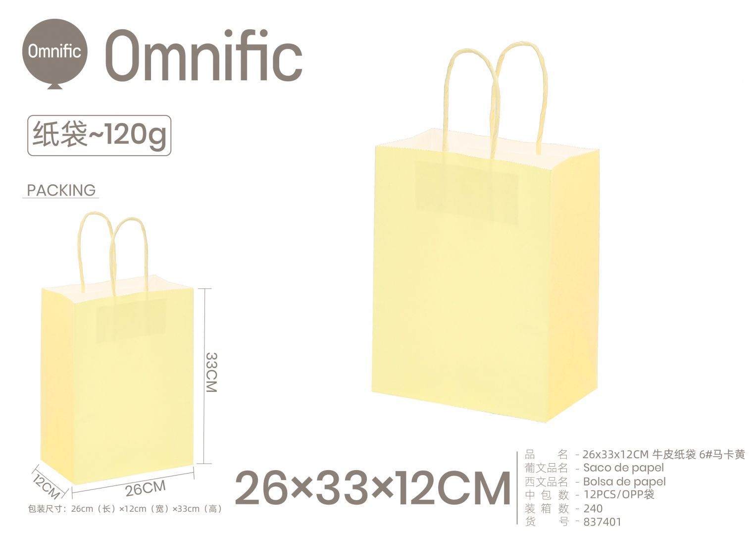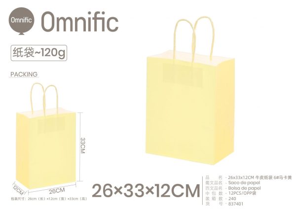 C.B. 5600936837401SACO DE PAPEL KRAFT 26*33*12CM AMARELO PASTEL