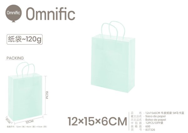 C.B. 5600936837326SACO DE PAPEL KRAFT 12*15*6CM AZUL PASTEL