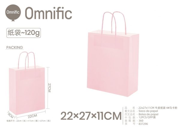 C.B. 5600936837296SACO DE PAPEL KRAFT 22*27*11CM ROSA PASTEL